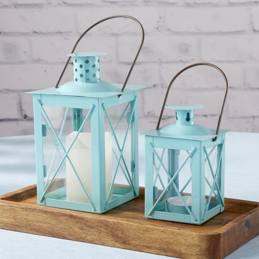 Kate Aspen Rustic Shelf Decor Luminous Vintage Tea Light Votive Candle Holders, Medium Metal Decorative Lantern, Teal Blue ADORABLE LANTERNS - Light up your home, table settings or celebration decorations with elegant, vintage mini lanterns! A medium sized Luminous Blue Lantern Tea Light Holder from Kate Aspen makes an incredible addition to your home décor or a way to illuminate your party. The shabby chic style features a candle lantern in a medium weight to hang above your front door or down the aisle. TEA LIGHT HOLDERS - Each blue lantern holds one tea light candle (not included) CREATE THE PERFECT AMBIANCE - Light up your back porch/deck or add the perfect touch of low light to your living room or kitchen with this farmhouse decor. The unique color and shape of the lantern add a stylish detail to any room. GREAT PARTY FAVORS - Perfect party favors for your guests to take home and remember that happy day MEASUREMENTS - Product measures: 3.78" w x without handle:6.3, with handle:8.9" h x 3.78" d. Packaged product measures 3.98" w x 5.28" h x 3.98" d. You asked and we delivered! Our popular Luminous Blue Lantern Tea Light Holder is back and bigger! Our miniature lanterns are so popular with all of you, we had to bring them back! These teal lanterns win your hearts with their shabby chic appeal. They're so great for home décor and can be used indoor and outdoor. If you have a backyard birthday party or housewarming, these will catch everyone's attention. They are lovely lanterns that hold tea light candles so you can get a few of them and scatter them around your house. If you want it for your kitchen decor, it's a fab choice. It's nice to light candles for an evening dinner so why not light in style! This candle lantern will look beautiful in decorating a bridal shower for your best gal pal or an evening hangout with your girl squad! Make it a romantic night with these decorative lanterns as well. You will not be disappointed when you purchase these chic lanterns! SHIPPING Domestic Buyers - We have confidence in our products, but if you are not fully satisfied please contact us within 30 days of purchase and you will get full refund. - We ship within 3 business days of payment, usually sooner - We offer FREE shipping on all orders! - We only ship to the lower 48 states, no APO/FPO addresses or PO Boxes allowed International buyers – please note: Import duties, taxes, and charges aren't included in the item price or postage cost. These charges are the buyer's responsibility. - Please check with your country's customs office to determine what these additional costs will be prior to bidding or buying. * Order Cancellation Policy ** You can return a product for up to 30 days from the date you purchased it. 1. The seller reserves the right to cancel the special case only due to eBay cancellation fee. 2. The decision of seller is the final. 3. The seller will respond to the cancellation request within 2 business days. Please wait for the result of cancellation. 4. In case the cancellation is not completed by some reasons, the buyer can follow the options below to get the refund. 4.1 The buyer can reject the item when it arrives. 4.2 The buyer can send the item back to the seller within 30 days If the buyer receives item (USA Shipment ONLY). The seller will provide the FREE return label to the buyer when the buyer opens " Return Item" case on eBay by using the reason as "Change my mind" ONLY. 5. When buyer has placed the order. The order will be processed and completed by automatic warehouse system within 5 minutes. In case that buyer sends the cancellation request after 5 minutes of placing the order, the request will be rejected. **Sending direct message to cancel the order is not allowed for every case.* Return Policy For the return case - If buyer would like to return the items for refund or replacement, please CONTACT SELLER to receive the free return label from seller. The refund or replacement will be processed with the tracking number of return label which is provided by seller only. The other ways of return which are not approved by seller will not be processed for the refund or replacement.