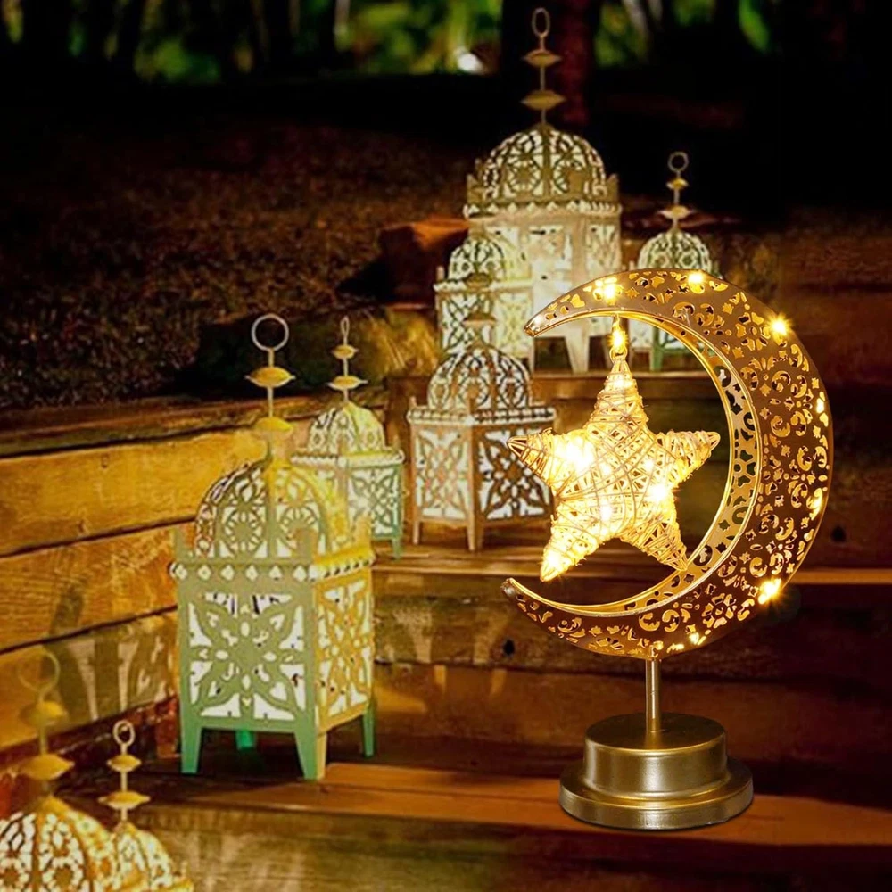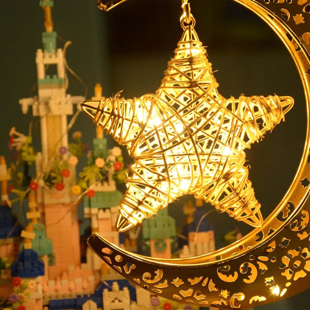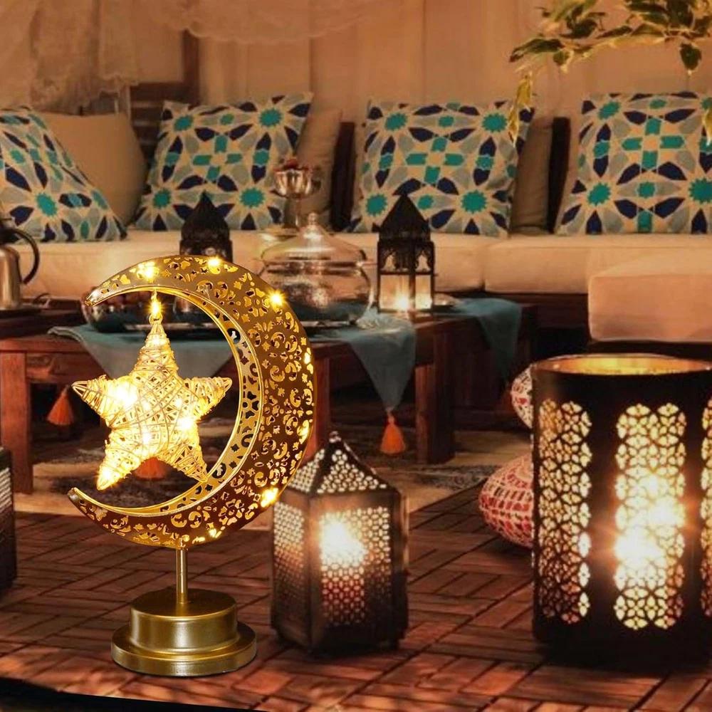 Store New Arrivals Add to Favorite View Feedback Contact Fast deliveries to the customer's home Quality customer service John Make the customers happy! Rustic Moon Lamp for Ramadan Decorations,Battery Operated Metal Rattan Star Moon Ramadan Lights for Home Bedroom Decor Boho Farmhouse Kitchen Dinner Ramandan Table Desk EID Mubarak Decorations Description 【Nice for Ramadan Decor】Made of vintage metal with cozy fairy string lights, this bronze rustic star moon lamp adds a nice special ambient during iftar and suhoor time. Perfect for Ramadan decorations. The soft warm lights is neither too bright nor too dark, can be used as night light for kids bedroom. 【Battery Operated Ramadan Lights】Powered by 3 x AA batteries(NOT INCLUDED), safe and easy to use, convenient to move and decorate anywhere you want. Decorating ramadan for bedroom bedside, kitchen, cabinet, dinning room, table, fireplace, mantle, yard parties, etc. 【Premium Ramadan Table Lamp】High quality bronze metal, rustic hollow out style, super cute and festive, specially designed for Ramadan decorations. This decorative Crescent moon star lamp looks so beautiful and unique both day and night. 【Any occasions decor】Add festive touch to entrance during ramadan eid Mubarak. Ideal for using on a table, on the bedside desk, in front of a window in bedroom, on ramadan fireplace mantle, you will reveive numerous compliments from neighbors and visitors. 【Ideal Ramadan Decor】Great Ramadan decor for friends, family and lovers. It can be used as a table lamp, kids night lights for bedroom, desktop nightstand. Also perfect boho decor, great rustic decor for bohemian style enthusiasts. Product Description Upgraded Rustic Metal Moon Lamp for Ramadan Decorations, Nice for Home Ramadan Decor This star moon shaped lamp is made of hollow out design vintage metal with cozy fairy string lights, adds a nice festive during ramadan eid holiday. The soft warm lights is neither too bright nor too dark, can be used as night light for kids bedroom. This rustic moon lamp is so beautiful and unique both day and night, perfect Ramadan decorations for home. Battery Powered Ramadan Decorative Lights, Portable to take anywhere Powered by 3 x AA batteries(NOT INCLUDED), safe and easy to use. No wires, safe and convenient, easy decoration and lighting in areas without power outlet. Ideal for using on a table, on the bedside desk, on fireplace mantle, bedroom bedside, kitchen, cabinet, dinning room, table, fireplace, yard, parties, etc. Item model number HLD584 Light Source Type LED Style Vintage Number of Items 1 Power Source Battery Powered Number of Light Sources 5 Control Method Touch Lighting Method LED Lamp Type led Cartoon Character Rattan Room Type Office, Ktichen, Dinning room, Bedroom, Living Room Bulb Shape Size A19 Product Dimensions 11"D x 5"W x 7"H Material Rattan, Plastic, Metal Collection All Efficiency Energy Efficient Finish Type Natural Included Components 1 x Star-shaped lamp Indoor/Outdoor Usage Indoor Water Resistance Level Not Water Resistant Batteries Required? No Item Weight 12.3 ounces Connectivity Technology USB Special Features Cordless Special Feature Cordless Shade Height 7 Inches Shade Color clear Mounting Type Tabletop Color Bronze Is Cordless? Yes Base Material Metal Is Waterproof false Voltage 4.5 Volts (DC) Recommended Uses For Product Decoration Shade Material Metal Finish types Natural Switch Type Touch ABOUT US We offer the best prices around on high quality products. Our E-store includes media such as books, movies, music and games while offering electronics, toys, sporting apparel, clothing, tools, general home, garden items and more. SHIPPING We are always working hard to ensure your package arrives as soon as possible. Please understand that some factors like weather, high postal traffic, and the performance of shipping companies are outside of our control. We offer free shipping to the lower 48 states and ship within 2 business days of payment, usually sooner. We do not accept P.O. Boxes. Please provide a physical address. For shipping outside of the continental USA, we only use eBay's Global Shipping Program. The item is shipped to KY and then sent to the rest of the world. International customers are responsible for all duties and taxes. Continue to 'check out' to calculate costs for shipping the item to your country. Messages regarding eBay's Global Shipping Program MUST be directed at eBay EXCLUSIVELY. RETURNS We offer a 30-Day Return Policy on items in which you are not completely satisfied with. You have the option of a full-refund or an exchange of the item. No returns are available on items shipped outside of the USA PAYMENT We accept PayPal. CONTACT US This page content is yet to come Please ad us to your favorite seller and visit again later Thank You CUSTOMER SATISFACTION We try our very best to make sure every customer is completely satisfied. If there's a problem, message us! We're happy to help. WE ACCEPT
