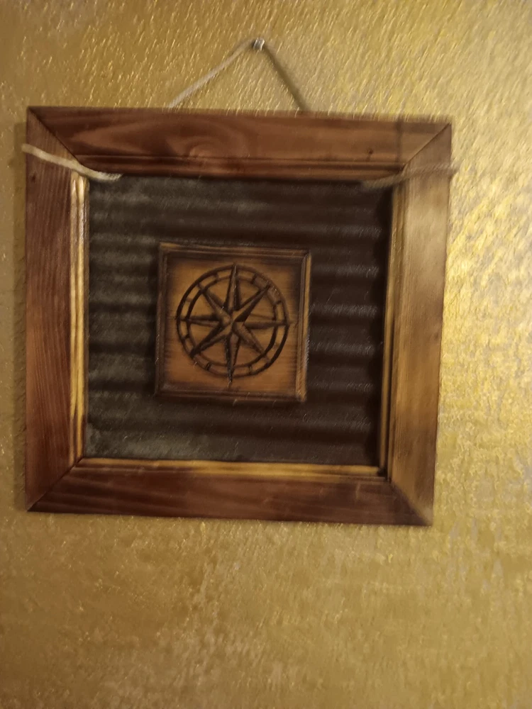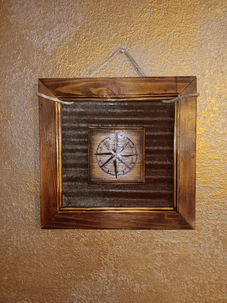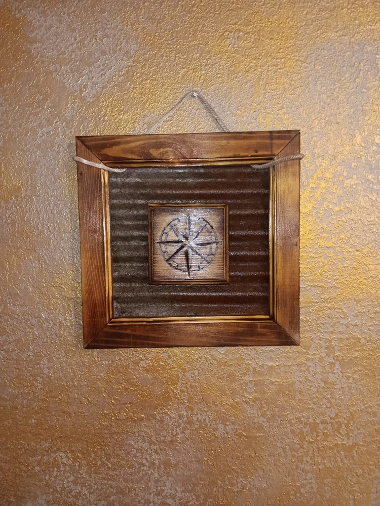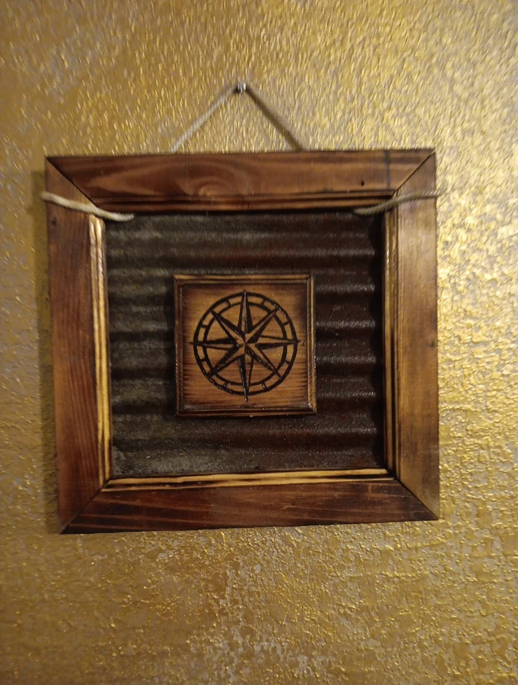 This beautiful wooden plaque features a rustic, primitive design that is perfect for any coastal or nautical themed room. The plaque is handmade with a square shape and a unique wood burned design of a ship's compass. It is perfect for adding a touch of art to any room and makes a great gift for lovers of the sea.