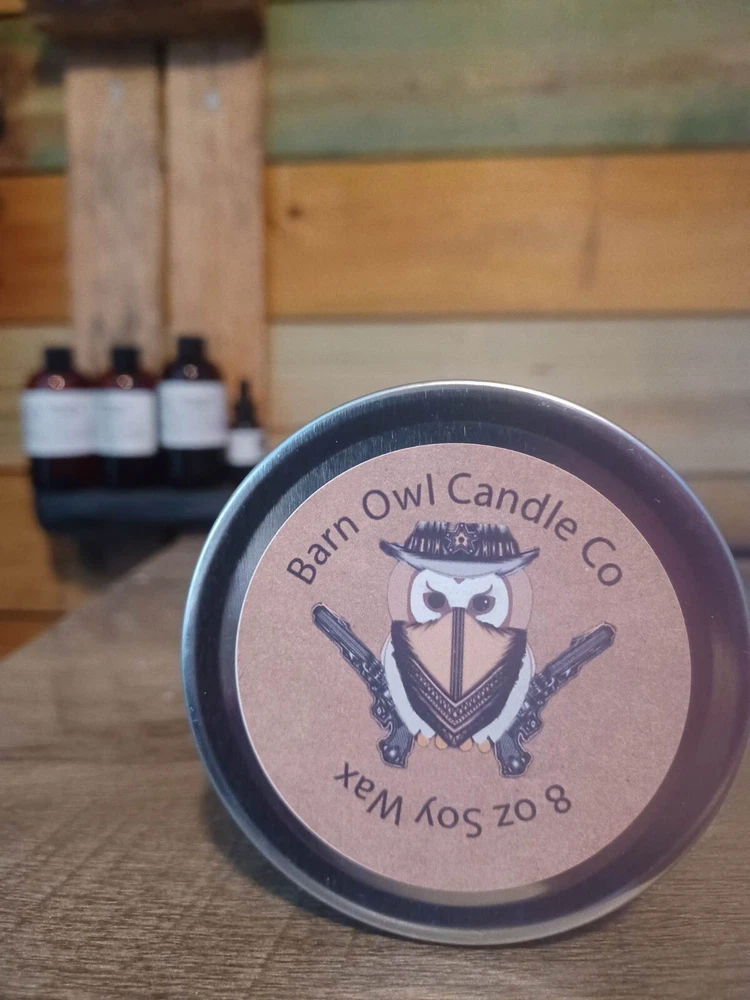 Masculine Western Candle Collection: Notes including woodsy pine, juniper, and patchouli. we use soy wax beads from soybeans grown in America’s Midwest. Our wax is sustainable, renewable and ethically produced. No color is added, this is the natural color of the wax. Please note that the natural color may vary from batch to batch depending on environment and scent used. 8 oz Metal Tin Soy Wax Lead Free Wick WE SHIP SUPER FAST "Making candles for a purpose, one cancer patient at a time" We created Barn Owl Candle Co in memory of my mom who dealt with breast cancer and leukemia cancer. With every purchase of a candle, we donate to Moffitt Hospital in Tampa, FL to suppose cancer patients and research. Barnowlcandleco.com for our full story <3