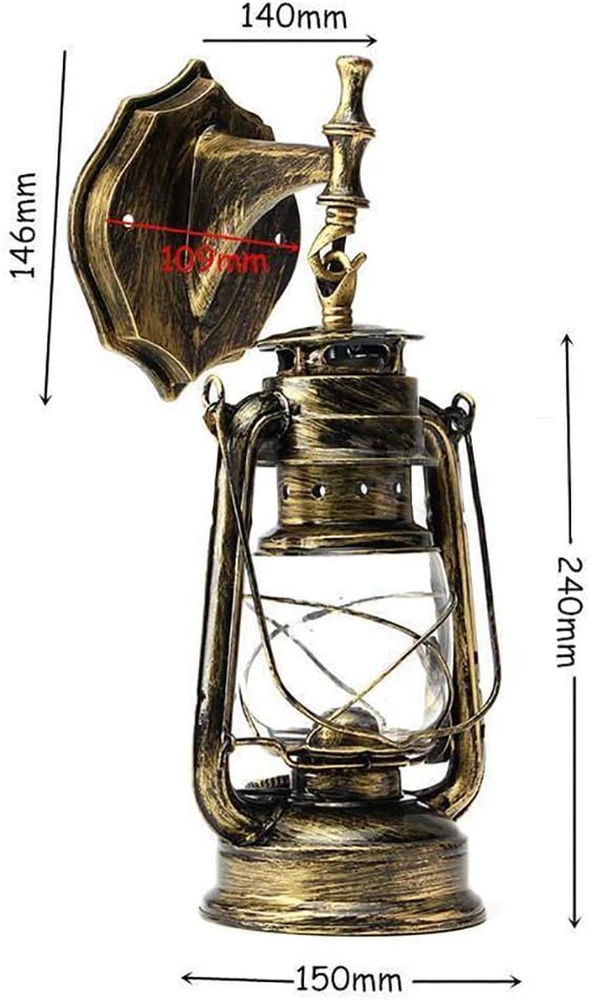 【Great Decoration】Our Bulb Retro Industry Vintage Rustic Lantern Lamp Wall Sconce Light Fixture serves not only as lighting, but also as a beautiful decoration. 【High Quality】Our Bulb Retro Industry Vintage Rustic Lantern Lamp Wall Sconce Light Fixture adopts metal and plastic.The plastic will work as good as glass, and it's not easy to broken. 【Easy to Install】The installation process of Our Bulb Retro Industry Vintage Rustic Lantern Lamp Wall Sconce Light Fixture is simple, includes all mounting hardware Accessories. 【Widely Used】This wall lamp is ideal for hallways,stairwells,restaurants, hotels,motels and any room to add a little "mood" lighting. 【Best Service】Our products are sent from the US and can be delivered quickly. If you have any questions or quality issue,please feel free to contact us. Specification: Material: METAL&PLASTIC Bulb Type: E27 BULB Size: 18*18*28cm/7.08*7.08*11.02inch Total height:38cm/14.96inch Weight:0.7kg Features: - provides your home or shop lively and wonderful photo. - It serves not only as lighting, but also as a beautiful decoration. - This wall lampIdeal for hallways,stairwells,restaurants, hotels,motels and any room to add a little "mood" lighting Package include: 1x Wall Light