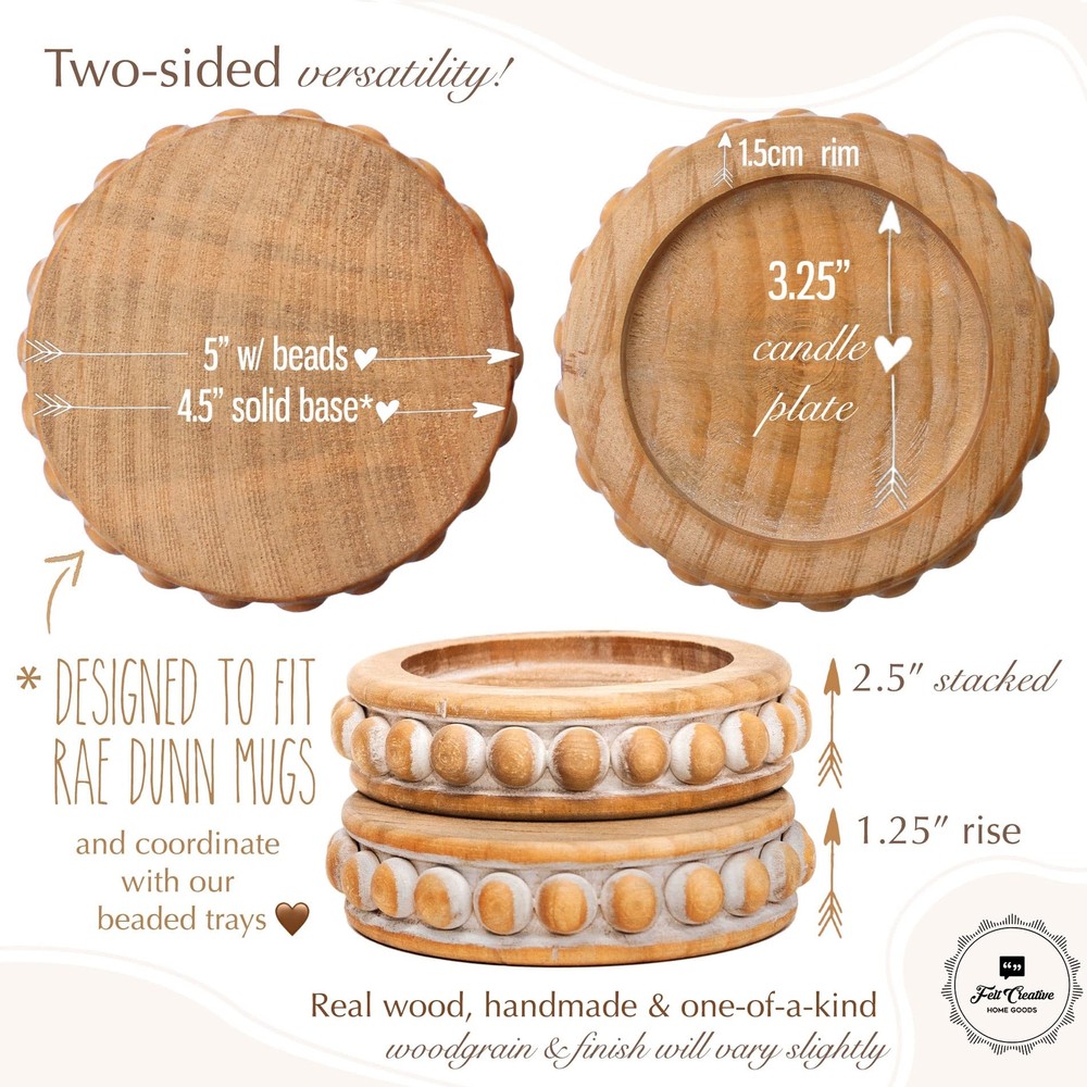 Candle Pedestal [Set of 2] Round Rustic Wood Beaded Risers - Sturdy 2-Sided Stackable Decor Pedestal Stands for Tiered Tray, Candle, Mug Display, Risers Display Stands (Rustic Brown, 5 inch) VALUE SET OF 2 - Elevate your space and add charm to your decor with these beautiful beaded farmhouse candle holders! Handmade with care, these 5” mini beaded risers for decor are perfectly sized to elevate your favorite mugs, candles, or succulents. A delightful blend of style and functionality, these candle risers enhance any space with rustic elegance. TWO-SIDED VERSATILITY - These sturdy, multifunctional wood candle stands offer two sides for versatile use. One side is designed to display smaller decor, while the other accommodates larger items, making them ideal as wood beaded tray accents or tiered tray stand decor. Don’t miss exploring our stunning collection of tiered trays! STYLISH AND FUNCTIONAL - These gorgeous wood candle plates pair beautifully with our farmhouse-chic decor collection. These small round wood risers for decor are perfect for showcasing mason jar candles, pairing perfectly with our 2 tiered tray stands, and so much more. STUNNING REAL WOOD RISERS FOR DECOR - Handcrafted from genuine wood, these mini pedestals showcase their natural woodgrain. Felt Creative Home Goods pays attention to every detail, ensuring these mini risers provide timeless beauty to your space. HANDMADE CRAFTSMAN QUALITY - These natural brown round risers for decor are carefully crafted. Designed by a North American small family business and handmade with care, our wood risers for kitchen counters combine quality and durability, offering a beautiful and long-lasting decor choice. This 5 inch wood riser is truly a must-have! VERSATILE AND OH SO CUTE - These small beaded risers can be used as a wood candle stand or a candle tray. This versatile 5” wooden riser set also functions as a 5 inch round pedestal stand for candles or decor items, bringing charm and functionality to any home setting. ELEGANT AND CLASSY - Our beaded wood candle holders are the perfect risers for decor display or candle risers to complement any decor style. These short wood candle holders add a touch of elegance to any decor, providing a classic, stylish riser for your candles. An excellent choice as a small pillar candle holder! PART OF OUR STUNNING COLLECTION OF HANDCRAFTED HOME GOODS - These farmhouse candle risers are part of Felt Creative Home Goods beautiful beaded collection of home decor. Our beaded wood risers make a sophisticated, eye-catching addition to any home, enhancing your decor with timeless appeal. LIGHTWEIGHT AND DURABLE - Featuring a solid wood candle stand design, these round display risers are both lightweight and durable, perfect for showcasing your decor time and time again. Ideal as tiered tray risers for display, our wooden candle risers offers a sturdy, elegant solution for any space. OFFERED BY A NORTH AMERICAN SMALL FAMILY BUSINESS - Thank you for supporting our small business! Have questions about our small round wooden risers or looking for a small wooden stand for vases or mugs or tiny plants? We're here to help. We cherish our community members and consider you part of our family! Shipping We offer FREE shipping on all orders! We ship within Three business days of payment, usually sooner. We use a selection of shipping services such as UPS, FedEx, USPS etc. We only ship to the lower 48 states, no APO/FPO addresses or PO Boxes allowed. Local pickups and combined shipping options are not provided at this time. International buyers – please note: Import duties, taxes, and charges aren't included in the item price or postage cost. These charges are the buyer's responsibility. Please check with your country's customs office to determine what these additional costs will be prior to bidding or buying. Order Cancellation Policy * Order Cancellation Policy ** You can return a product for up to 30 days from the date you purchased it. 1. The seller reserves the right to cancel the special case only due to eBay cancellation fee. 2. The decision of seller is the final. 3. The seller will respond to the cancellation request within 2 business days. Please wait for the result of cancellation. 4. In case the cancellation is not completed by some reasons, the buyer can follow the options below to get the refund. 4.1 The buyer can reject the item when it arrives. 4.2 The buyer can send the item back to the seller within 30 days If the buyer receives item (USA Shipment ONLY). The seller will provide the FREE return label to the buyer when the buyer opens " Return Item" case on eBay by using the reason as "Change my mind" ONLY. 5. When buyer has placed the order. The order will be processed and completed by automatic warehouse system within 5 minutes. In case that buyer sends the cancellation request after 5 minutes of placing the order, the request will be rejected. **Sending direct message to cancel the order is not allowed for every case.* Return Policy - If buyer would like to return the items for refund or replacement, please CONTACT SELLER to receive the free return label from seller. The refund or replacement will be processed with the tracking number of return label which is provided by seller only. The other ways of return which are not approved by seller will not be processed for the refund or replacement. Return You can return a product for up to 30 days from the date you purchased it. Any product you return must be in the same condition you received it and in the original packaging. Please keep the receipt. Payment We accept payment by any of the following methods: eBay Payments Please pay as soon as possible after winning an auction, as that will allow us to post your item to you sooner! Feedback Customer satisfaction is very important to us. If you have any problem with your order, please contact us and we will do our best to make you satisfied. Contact Us If you have any queries, please contact us 