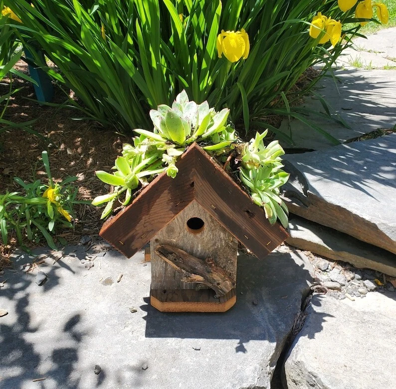 Enhance your outdoor space with this Hanging Planter Birdhouse, a perfect blend of style and functionality. Measuring 12" h x 6" w x 9" d, this versatile piece serves as both a charming planter birdhouse and a stylish addition to any farmhouse garden decor. Crafted with care from reclaimed wood, it embodies the beauty of sustainability and rustic elegance. The barn wood planter design makes it an ideal choice for those seeking rustic garden planters that double as bird havens. Its unique construction adds a touch of natural beauty to your garden while providing a cozy space for birds to nest. This hanging planter for birds is perfect for any rustic outdoor decor setting, seamlessly blending with your farmhouse hanging planter collection. As a standout piece of reclaimed wood garden decor, this hanging wooden planter birdhouse is a thoughtful and unique gift for bird lovers. Its rustic charm and multifunctionality make it a favorite among nature enthusiasts and decorators alike. Whether used as a centerpiece in your outdoor garden decor or as part of your rustic farmhouse outdoor decor, it’s sure to capture attention and admiration. This rustic birdhouse offers more than just aesthetic appeal. It provides a practical and eco-friendly solution for combining gardening with birdwatching. Its design reflects the timeless charm of barn wood planter birdhouses, making it a perfect outdoor birdhouse gift for any occasion. Transform your space with this garden decor with reclaimed wood, a piece that embodies rustic beauty and functional design. From its sturdy build to its charming appeal, this rustic outdoor planter is a must-have for anyone looking to elevate their outdoor space with eco-conscious style.