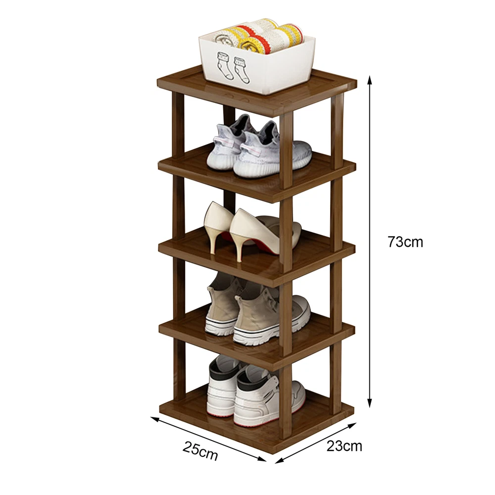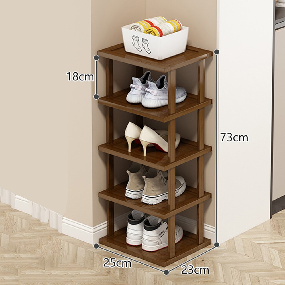 This rustic organizer is a total game-changer! It fits perfectly in that awkward corner space and keeps all my shoes neatly arranged. The wood looks beautiful and it was super easy to assemble. Finally solved my clutter problem!