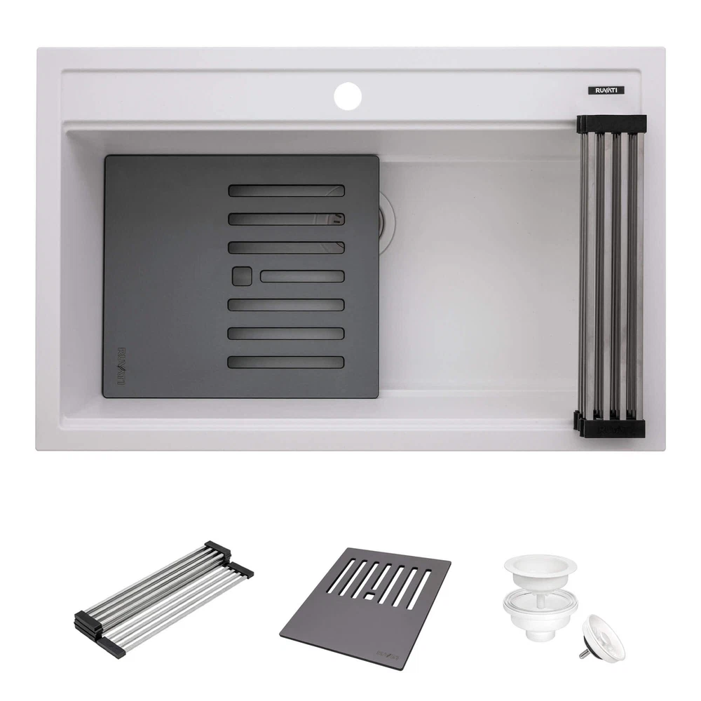 Ruvati RVG1631 epiCube 31-Inch Drop-In Granite Sink in White
