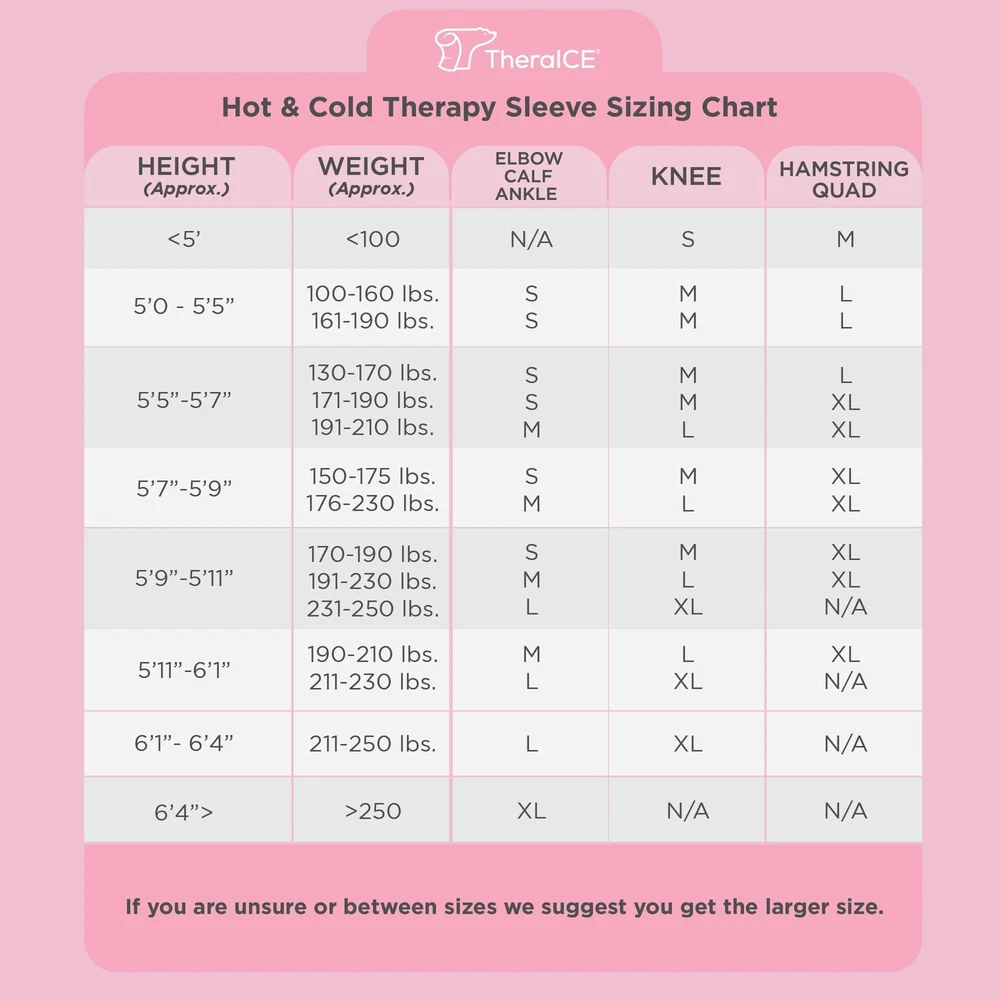 Brand: TheraICE Color: Ice Pack Compression Sleeve UPC: Does not apply gtin13: Does not apply Package Dimensions LxWxH: 12.76x7.36x1.02 Inches Weight: 1.46 Pounds Size: Medium - Pack of 1 Type: Does not apply