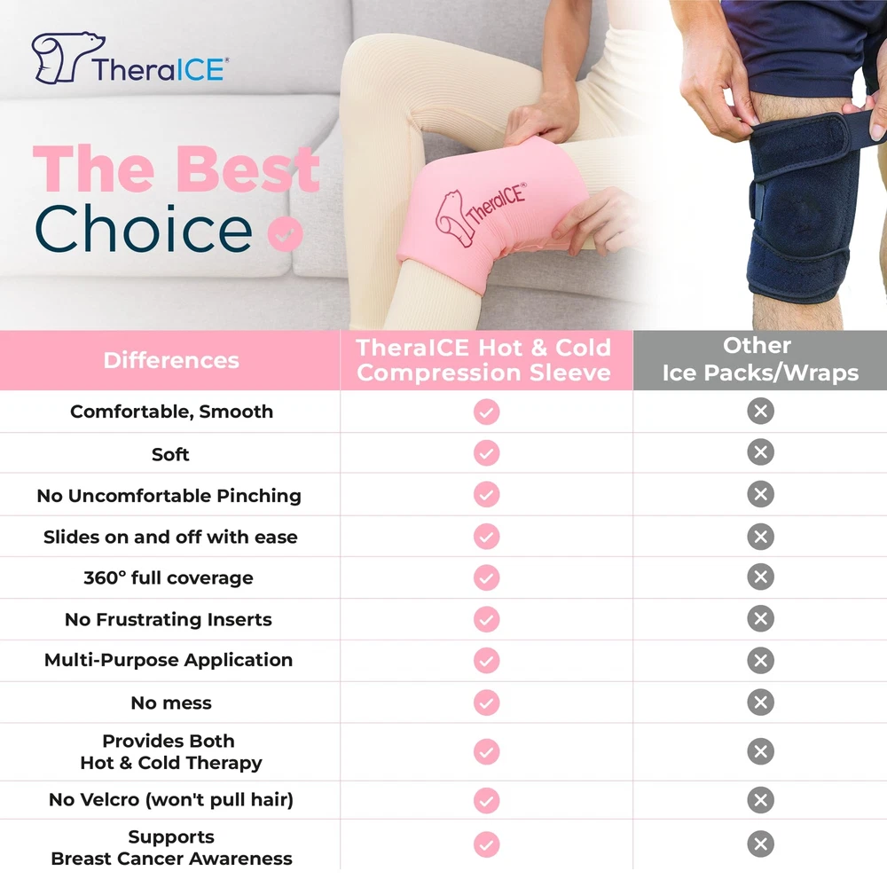 The Hot and Cold Therapy Sleeve, unlike traditional ice packs, this flexible sleeve can soothe and support without sacrificing mobility. It provides comprehensive, 360° coverage. Made with cutting-edge material and expert-grade gel, this wrap is both comfortable and versatile and is great for use on the knee, elbow, bicep, hamstring, thigh, quad, calf, or ankle. Use it to warm up muscles before working out or playing sports. Then freeze it to help soothe afterwards. Sleeve Features: Complete, 360° arm or leg coverage Provides hot or cold therapy as needed Flexible wrap can be used on knee, elbow, bicep, hamstring, thigh, quad, calf, or ankle Stabilizes the area while maintaining mobility Stretchable and form-fitting Clean, convenient, and travel-friendly design. Freeze: Place sleeve in freezer bag and put in freezer for at least two hours. Heat: Remove sleeve from any plastic bags. Be sure sleeve is at room temperature. Microwave for 20 seconds, if more heat is needed microwave in 5 second increments. Apply: Gently pull sleeve onto desired area of the body and keep in place for approximately 15 minutes. Wash: Hand wash with damp towel. Do not submerge sleeve in water. Air dry, do not machine wash. CAUTION: If gel comes in contact with skin, wash the area immediately with soap and water. If crystals become visible, throw away the sleeve and do not apply to skin. The Hot and Cold Compression Sleeve is not just an ordinary knee ice wrap. Its unique design offers 360° arm or leg coverage for optimal movement and rapid recovery. This slip-on knee ice pack ensures no more hassles with messy ice packs, fussy straps, or knee braces, giving you a full wrap around the entire knee after surgery or injuries. Experience immediate relief for muscles and joints from inflammation, swelling, strains, sprains, tendinitis, tendinosis, tennis or golfer’s elbow, and general pain management. This knee sleeve is a versatile solution for numerous issues such as tennis elbow or golfer's elbow, and it's ideal for athletes involved in basketball, football, soccer, running, climbing, and more. Moreover, the elbow ice pack wrap and knee ice pack wrap provide added relief to targeted areas. As a natural remedy, this knee compression sleeve for knee pain is a safe choice for daily use. It aids in rehabilitation and recovery, providing excellent support to injured or vulnerable zones without hindering mobility. The is more than just an ice pack for injuries; it's a comprehensive solution to muscle and joint pain. The stretchable, single-piece, form-fitting design of this reusable sleeve ensures comfort. Whether you're seeking an ice pack for knee, elbow ice pack, or arm, this product has you covered. It's available in four sizes – S, M, L, or XL – ensuring a snug fit for everyone. Crafted with state-of-the-art material and professional-grade gel, this sleeve stands out from regular ice packs for knees. Comfortable, adaptable, and perfect as an elbow or knee ice pack wrap, it can be worn directly on the skin or over light clothing. Plus, maintaining the product is hassle-free, making it a top choice among knee and elbow ice packs.