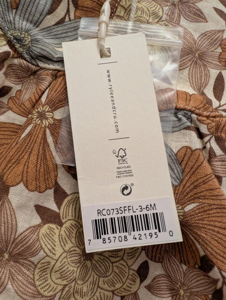 Rylee + Cru Floral Sleeveless Cotton Romper Brown Beige Gray White 3-6 Months