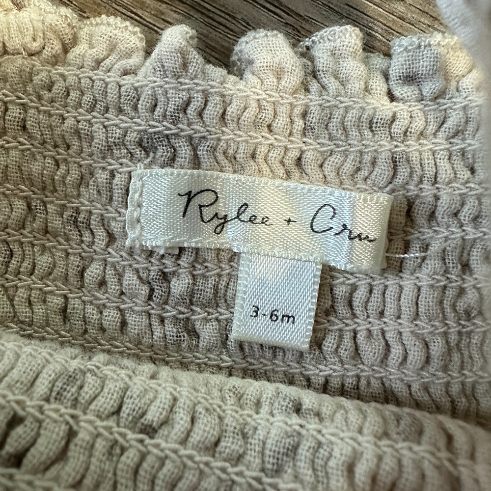 Adorable and minimalist romper from Rylee + Cru featuring the popular dragonfly print. Perfect for warm weather, photos, or everyday boutique style. Details: Brand: Rylee + Cru Style: Sawyer Jumpsuit / Romper Size: 3–6 Months Print: Dragonfly Tie shoulder straps Soft, lightweight fabric Relaxed, comfortable fit Perfect for spring and summer wear. Rylee + Cru is known for its neutral tones and high-quality, modern children’s designs. Condition: Gently used, no holes or stains. Fast shipping. Message with any questions!