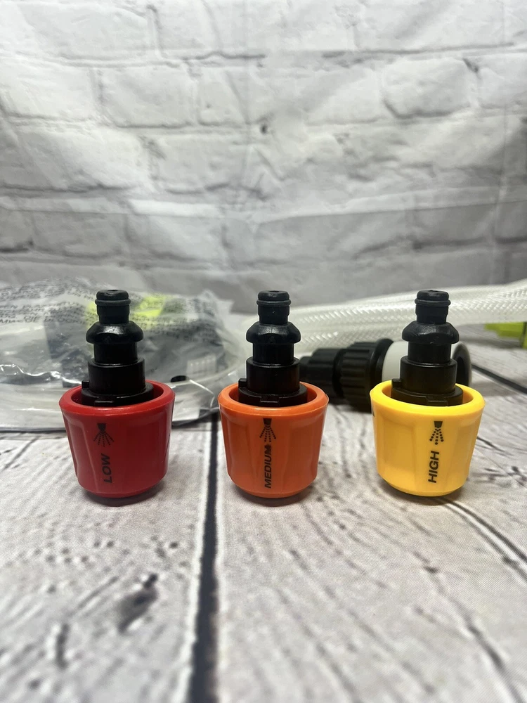 The Chemical Nozzle Kit is ideal for applying disinfectant, bleach, cleaning solutions, herbicides and insecticides for ultimate versatility and maximum coverage. Easily attach 1 of the 3 quick-connect nozzles to the RYOBI Power Cleaner to create low, medium and high coverage mist. Includes: 3 quick-connect nozzles (low, medium and high), 2 l and 1 Gal. bottle adaptors 5 ft. hose and quick connect adaptor Nozzle droplet size: 50 mic, 70 mic, 160 mic Bin 3 PA