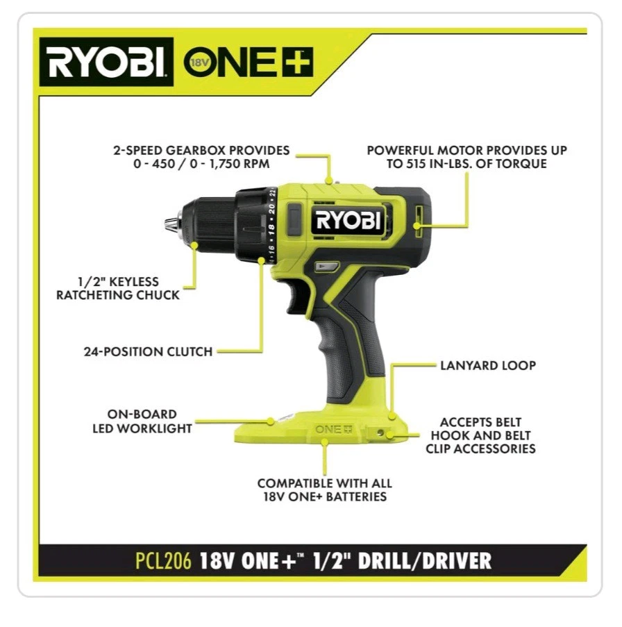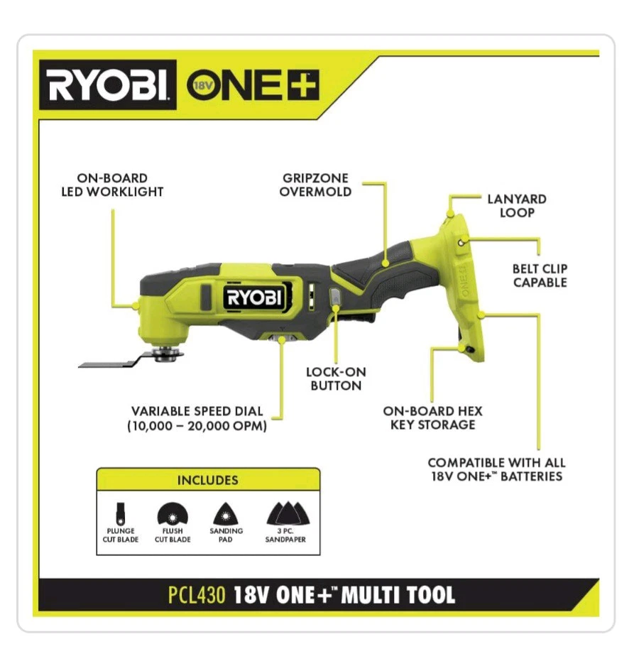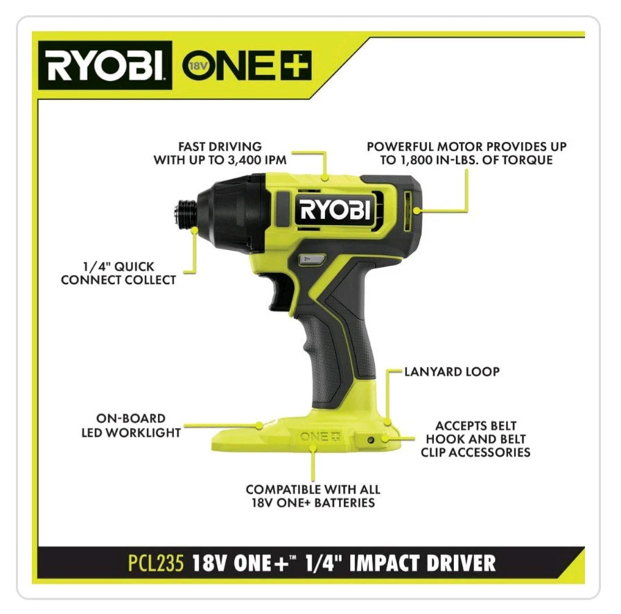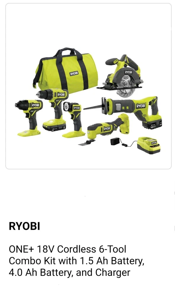 Ryobi ONE+ 18V Cordless 6-Tool Combo Kit With 1.5 Ah, 4.0 Ah Batteries & Charger