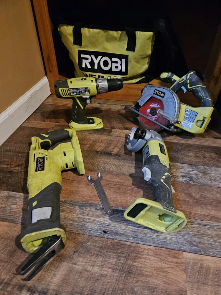 Roby tool a lot, including bag, circular saw saw zaw, grinder, and drill. Does not include chargers or battery's