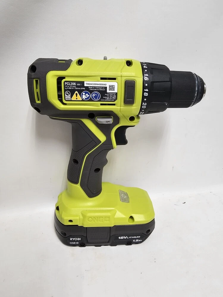 Battery Capacity:1.5 AHType:CORDLESS DRILLVoltage:18VBattery Technology:LITHIUM IONNumber of Items in Set:3MPN:Does not ApplyNumber of Batteries:1Motor Type:BRUSHEDChuck Size:1/2Auxiliary Handle:NoFeatures:PORTABLEChuck Type:KEYLESSModel:PCL206Manufacturer Warranty:NONEBattery Included:YesPower Source:BATTERYColor:MULTISet Includes:DRILL, BATTERY CHARGERSeller Notes:“PLEASE REACH OUT WITH ANY QUESTIONS OR FOR ADDITIONAL PICTURES”Brand:RYOBI