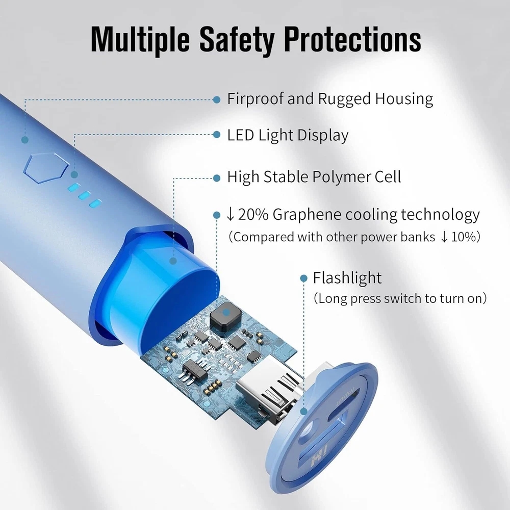 S03 Portable Charger, Small Power Bank External Battery Pack, 5000mAh, Blue Product Details Connector Type: USB Type C Brand: SIXTHGU Battery Capacity: 5000 Milliamp Hours Color: Blue Special Feature: Flashlight 5000mAh Capacity: 5000mah rechargeable external battery pack charges most smartphones 2-3 times. Please note that this power bank's capacity is less than your phone's battery capacity due to the phone's internal components and other factors 3A Fast Charging: The 5000mAh Power Bank Fast Charging for devices (up to 5V/3A), compatiable with iPhone 14/13/12/11/X/XR/, Samsung Series. Long life Backup Flashlight: With built-in LED flashlight, this small portable phone charger can be used as backup flashlight for emergency, Long press button 3s, it will light up the dark for you. Support USB-C Charging: Support USB-C Output, you can use any of your charging cables to power your devices anytime, anywhere SAFETY & RELIABLE: Premium UL2056 & MSDS & UN38.3 certified ; Premium protection IC against over-heating, short-circuiting; Fireproof protection-Housing