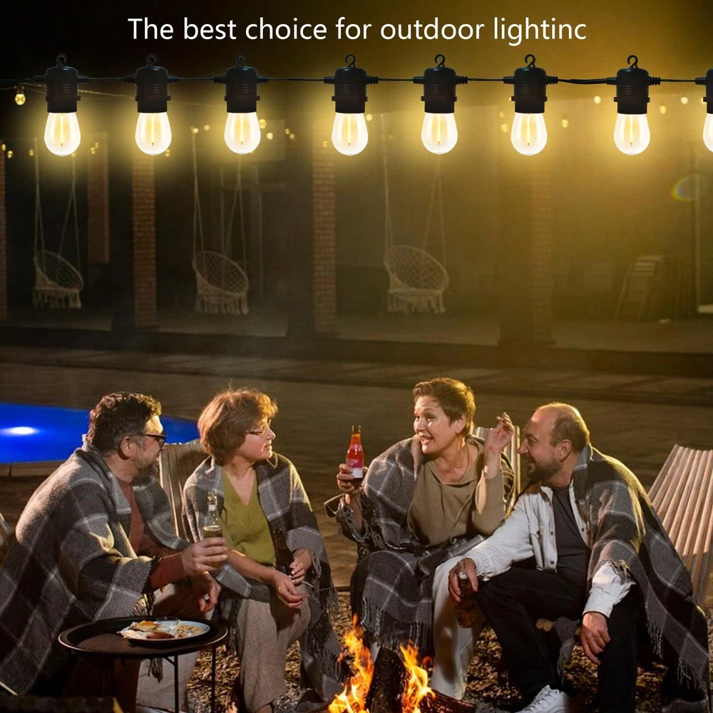 ✨ Lasting splendor: 25-foot outdoor led string lights with heavy-duty black wiring and 8 suspension sockets, a set consisting of 9 clear ST14 breakproof Edison led bulbs, provide an enchanting glow to create a charming ambiance for your outdoor event decor and lighting ✨ Weather resistance: Outdoor patio lights are weather-proof, shatter-proof and IP44 waterproof UL listed for indoor and outdoor use, and commercial-grade led outdoor lights withstand a variety of factors to ensure lasting use, even in rain, wind or snow. ✨ End to end connection :25Ft backyard outdoor light, 3Ft lead with male plug (spare fuse stored in lead plug), 3Ft pitch between ST14 led bulbs, 1Ft tail with female connector. Each 4.8-watt, 25-foot outdoor light string connects 90 light strings (up to 432 watts) together to cover a larger area and create a cohesive lighting display. ✨ Dimmable string lights: Outdoor patio lights are equipped with ST14 LED Edison bulbs of 0.6W each, and the LED bulbs emit 2700K warm white light. Led outdoor deck lights are compatible with most dimmers (not included) for better lighting flexibility. Suitable for residential and commercial use, outdoor waterproof led patio lights are ideal for weddings, gazebos, pergolas, restaurants, cafes and more. ✨ Easy to install: The mounting is a hook that lets you effortlessly hang the lights wherever you want. Plug outdoor led string lights into any standard outlet for instant lighting. Outdoor decorative lights are perfect for patio parties, backyard gatherings, weddings, Christmas, and more. With their vintage-inspired design and energy-efficient LED bulbs, they effortlessly blend style with function.