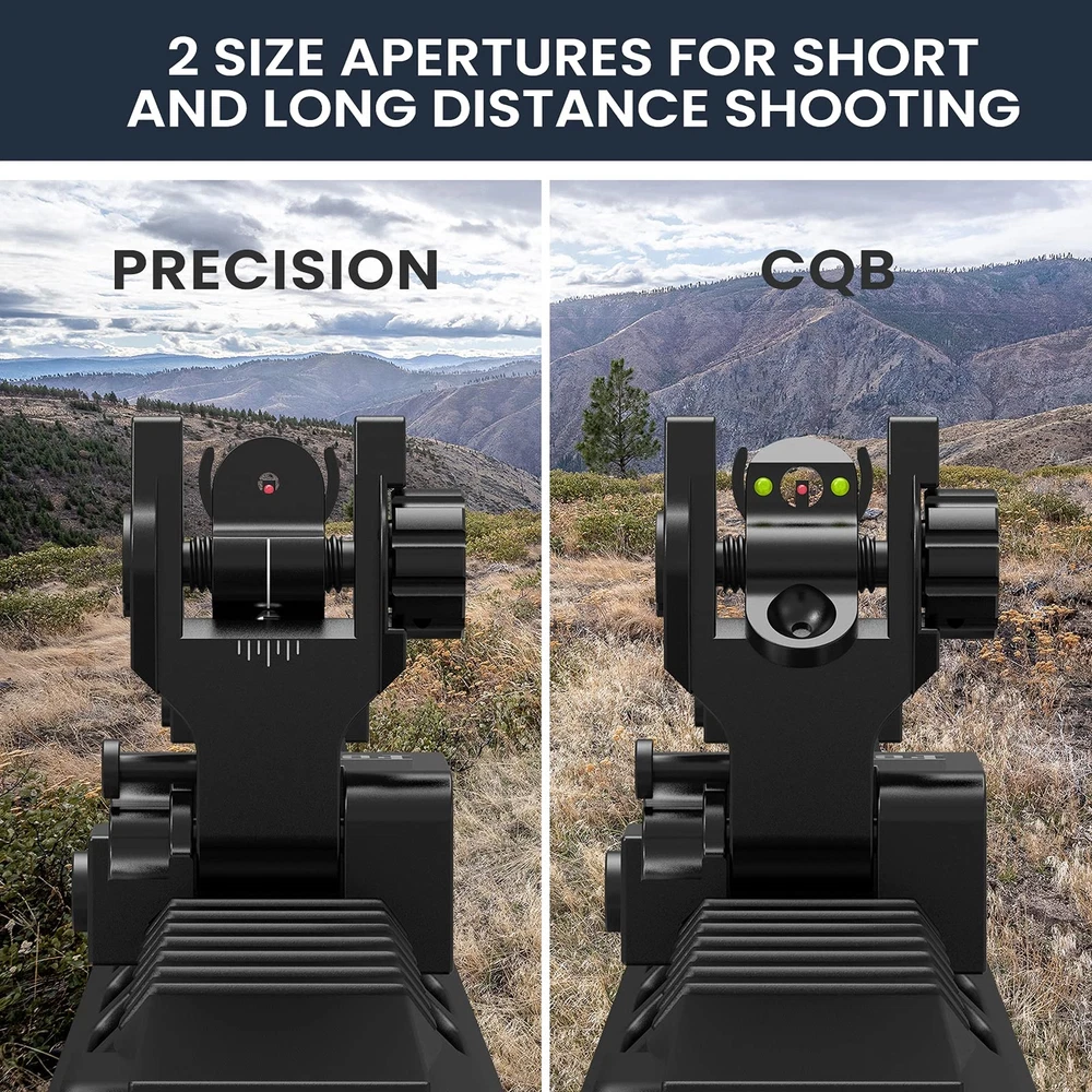 S27 Fiber Optic Iron Sights Flip Up Front and Rear Sites with Red and Green Dot Picatinny Backup Sight Set (Black) Enhanced Visibility: The S27 fiber optics iron sight features a red and green dot for easy visibility. Its flip-up design allows for quick deployment by simply pushing a button. Please note that the sight must be manually flipped up, as it does not have spring-assisted pop-up functionality Dual Aiming Aperture: The rear sight is equipped with dual apertures, enabling quick target acquisition. It also offers windage adjustment, making it suitable for both short and long-distance shooting Lightweight and Durable: Crafted from high-quality aluminum, the sight is machined to be lightweight yet highly durable. It is also Mil-Spec hard anodized for added strength and longevity Front Sight: The front sight features an A2 post elevation adjustment,adjustment Tool is included, ready to use upon arrival. Rear Sight: The rear sight has a micro-style windage knob that offers the same MOA adjustment as a standard sight Easy Installation on Rail: The gun sight set is designed for easy installation on standard picatinny and weaver rails. An Allen wrench is included to assist with the installation process. The flip up sights have a low profile design Shipping We offer FREE shipping on all orders! We ship within Three business days of payment, usually sooner. We use a selection of shipping services such as UPS, FedEx, USPS etc. We only ship to the lower 48 states, no APO/FPO addresses or PO Boxes allowed. Local pickups and combined shipping options are not provided at this time. Return You can return a product for up to 30 days from the date you purchased it. Any product you return must be in the same condition you received it and in the original packaging. Please keep the receipt. Payment We accept payment by any of the following methods: PayPal Please pay as soon as possible after winning an auction, as that will allow us to post your item to you sooner! Feedback Customer satisfaction is very important to us. If you have any problem with your order, please contact us and we will do our best to make you satisfied. Contact Us If you have any queries, please contact us via ebay. We usually respond within 24 hours on weekdays. Please visit our eBay store to check out other items for sale! Thank you for shopping at our store.
