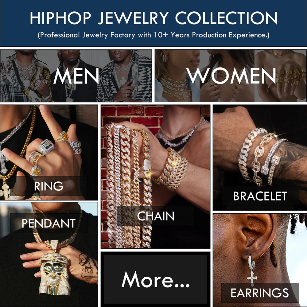 This stunning moissanite pendant necklace is a total showstopper! The 925 silver with rhodium plating gives it a luxurious shine, and the VVS1 D color stones sparkle like crazy. It’s tarnish-free, well-made, and perfect for adding serious bling to any outfit. Love the hip-hop vibe—great for both men and women. Comes with certification too! Definitely worth it.