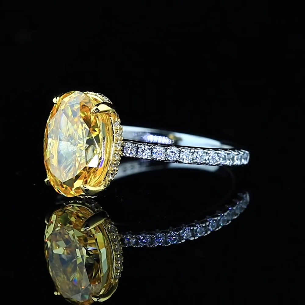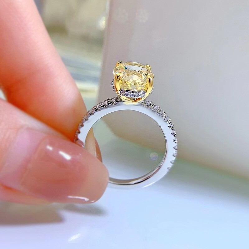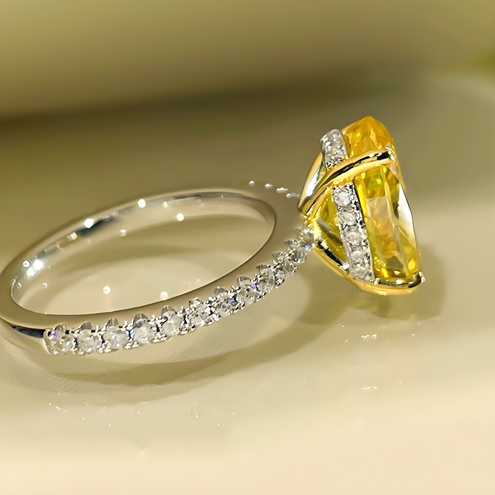 S925 Sterling Silver Oval Citrine High Carbon Zircon November Birthstone Ring