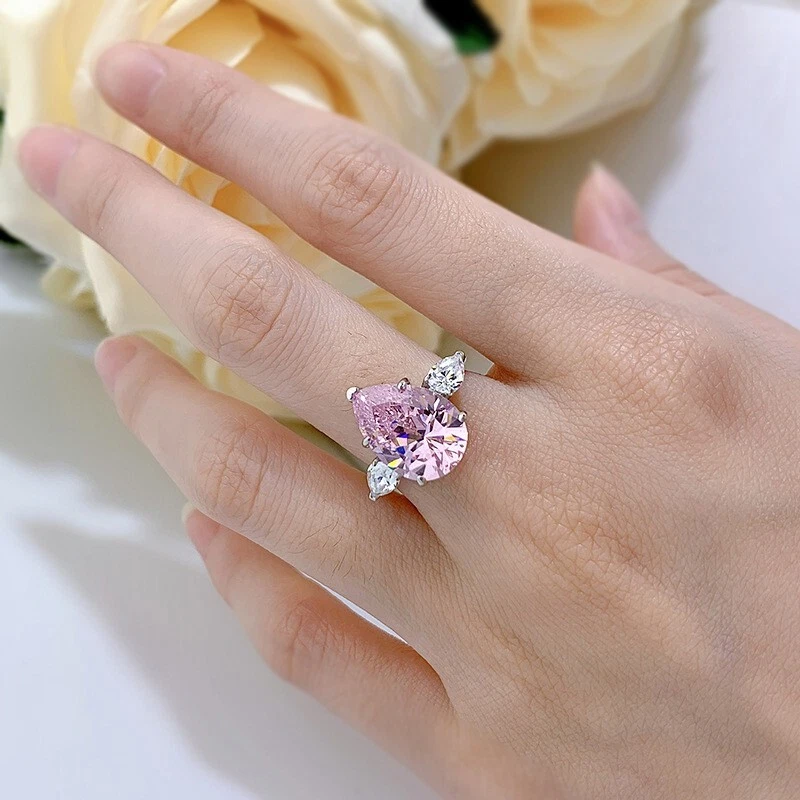 Main Stone: Zircon Number of Gemstones: 1 Cut Grade: Very Good Handmade: Yes Material: Gemstone Color: Silver Brand: Unbranded Metal Purity: 925 Main Stone Color: Pink Type: Ring Shape: Teardrop Ring Size: US:5-US:9 Metal: Silver Main Stone Shape: Pear