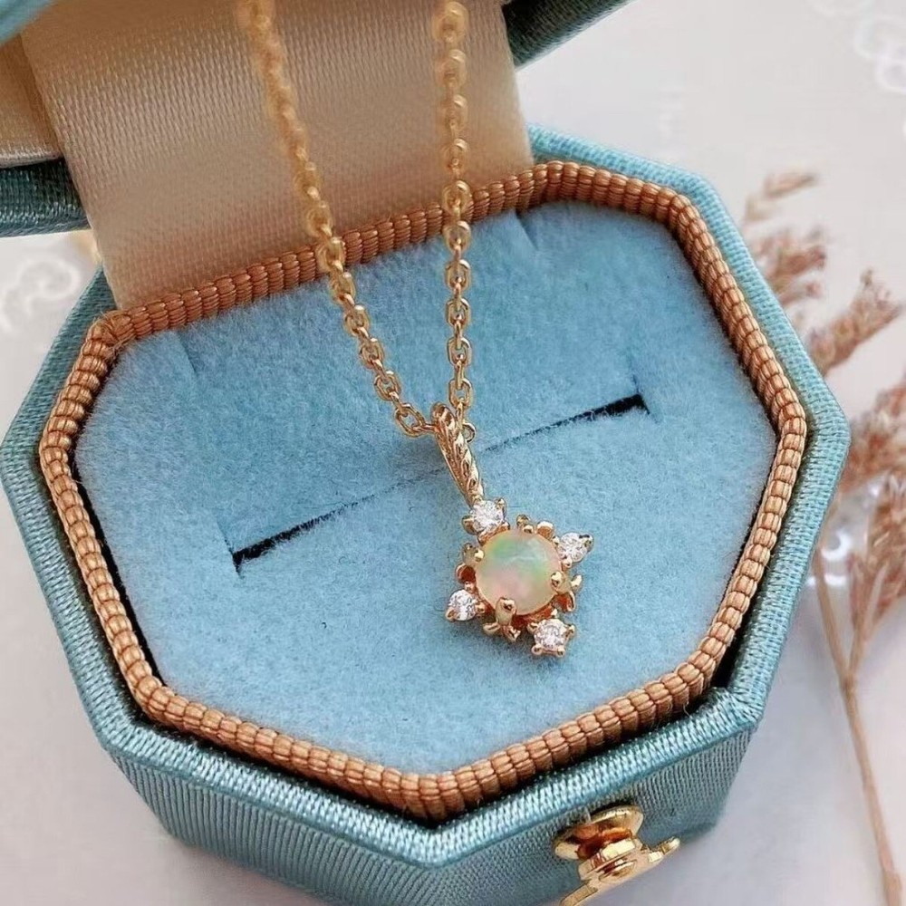 S925 sterling silver gold vermeil necklace with simulated diamonds and 6mm opal
