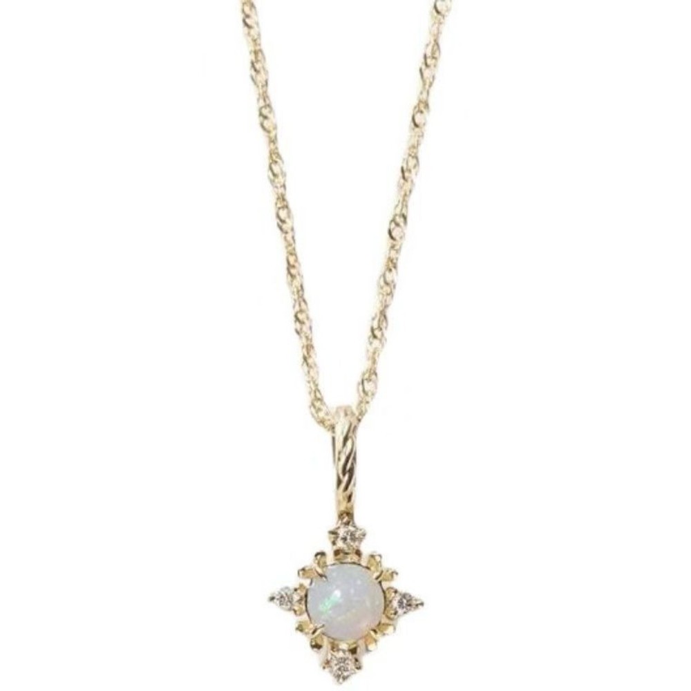 HomeS925 sterling silver gold vermeil necklace with simulated diamonds and 6mm opal