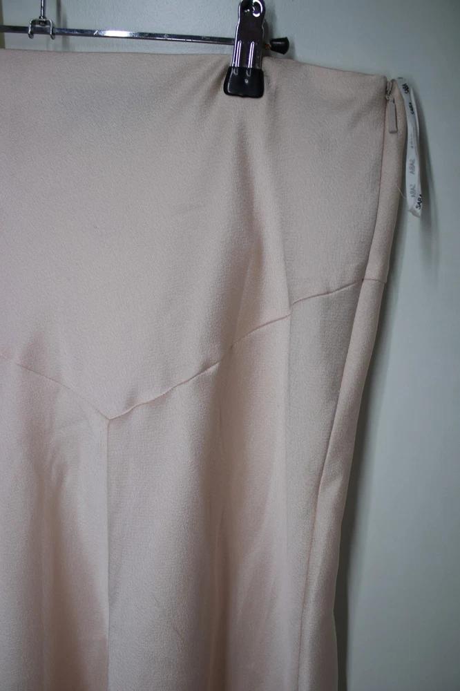 SABA skirt L 12 pink champagne flare midi pleated zip silk feel
