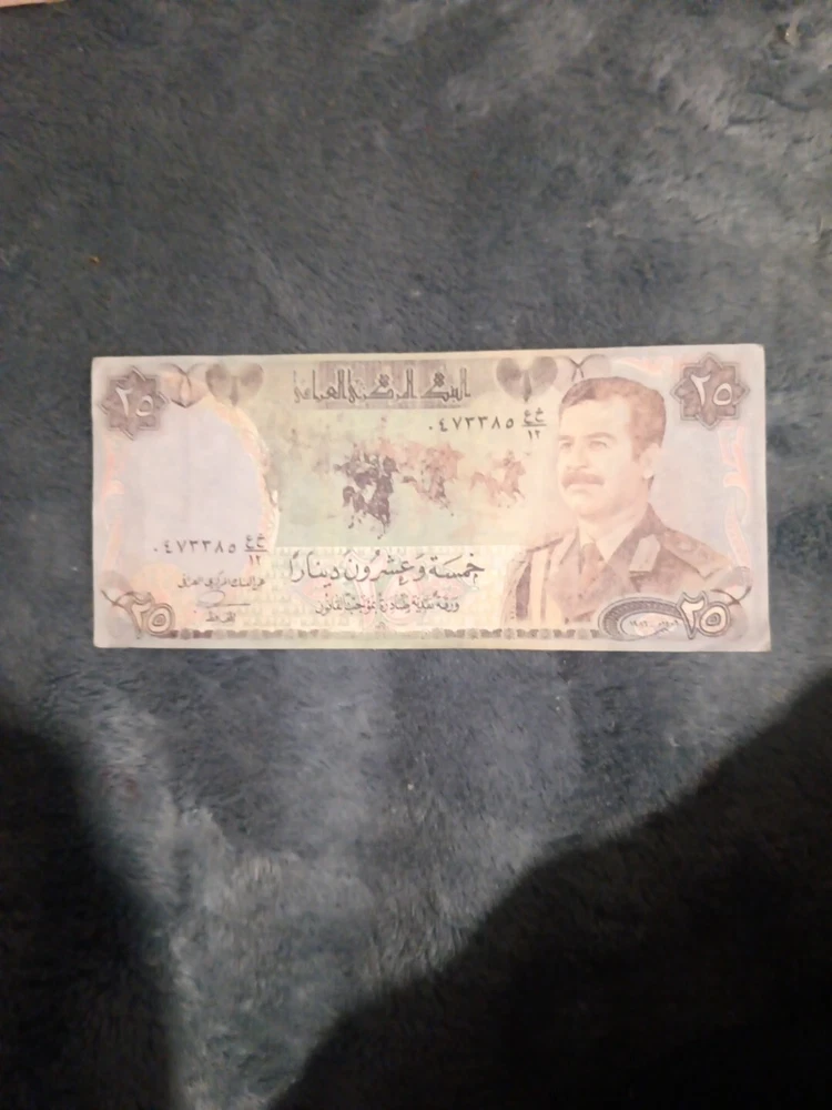 The product is a 25 dinars banknote featuring Saddam Hussein from Iraq. It is in uncirculated condition and comes in a protective holder. This piece of Iraqi currency serves as a historical artifact reflecting the period when Saddam Hussein was in power. The banknote is a collectible item for those interested in world currency and Middle Eastern history.