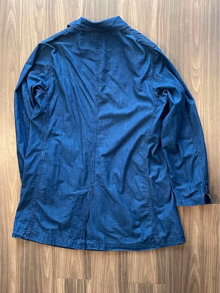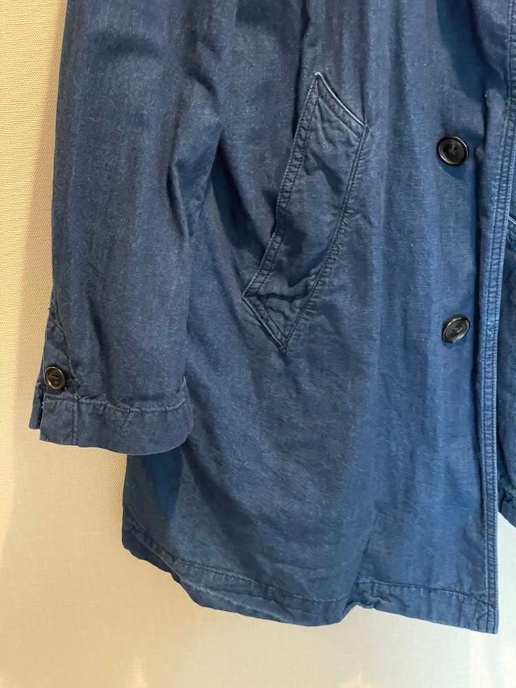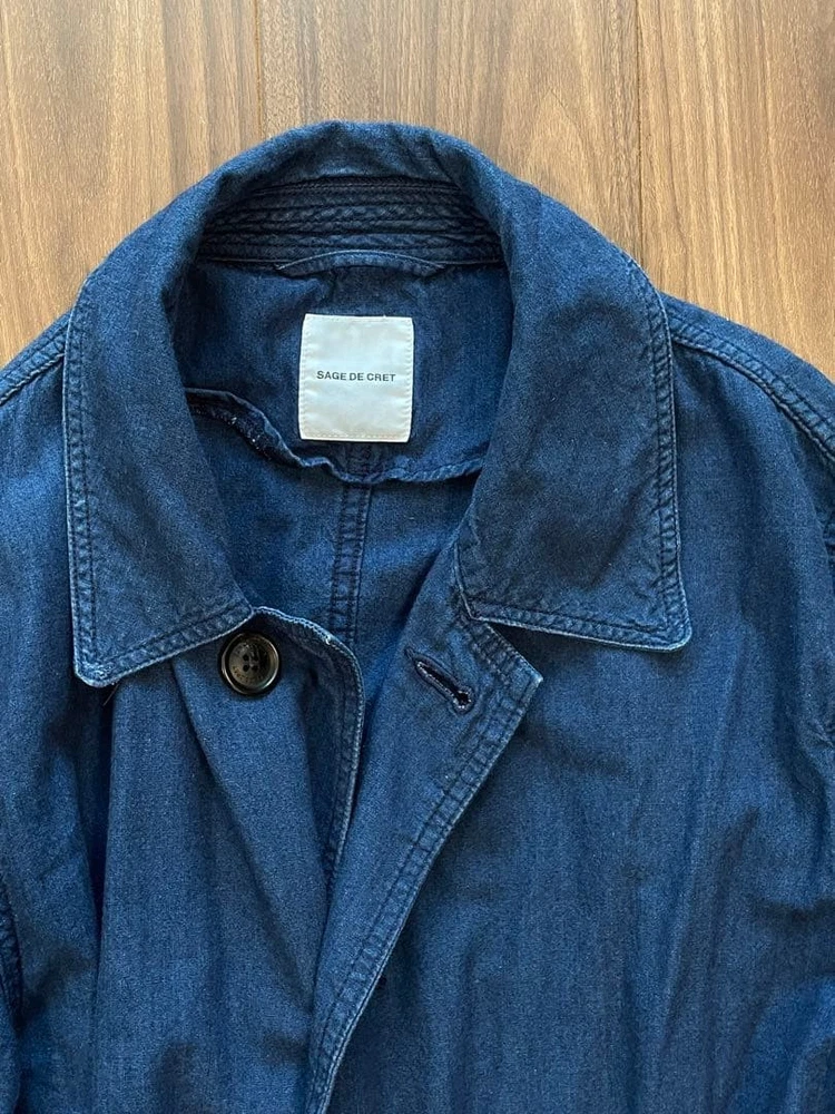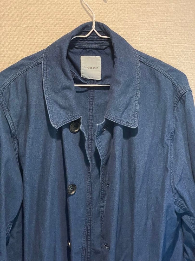 Product Description: Brand: SAGE DE CRET Color: Blue Material: Cotton (Water-Repellent) Condition: Slightly damaged with some visible wear This is a simple blue overcoat with a classic collar. It features a water-repellent fabric and has a light damage effect, making it ideal for autumn and early spring wear. Size Details: Shoulder Width: 47cm Chest Width: 59cm Sleeve Length: 63cm Length: 96cm Design: Solid Color Hood: No Hood Shipping Info: For US buyers: import duties are already included in the shipping cost. No additional fees will be charged, so please purchase with confidence. For buyers outside the United States, please note that import duties and taxes may vary by country. We kindly ask you to check your local customs regulations before purchasing. We ship with tracking. Thank you very much for taking the time to read through the information. I truly hope we can have a pleasant transaction together!