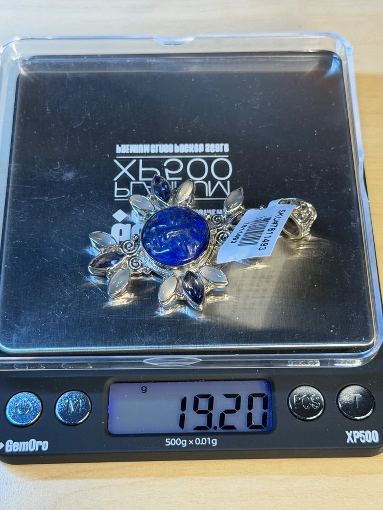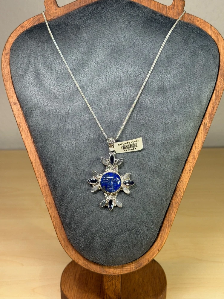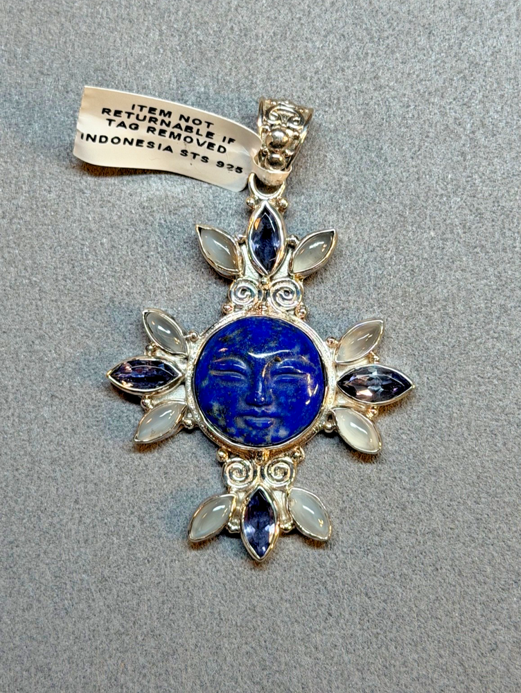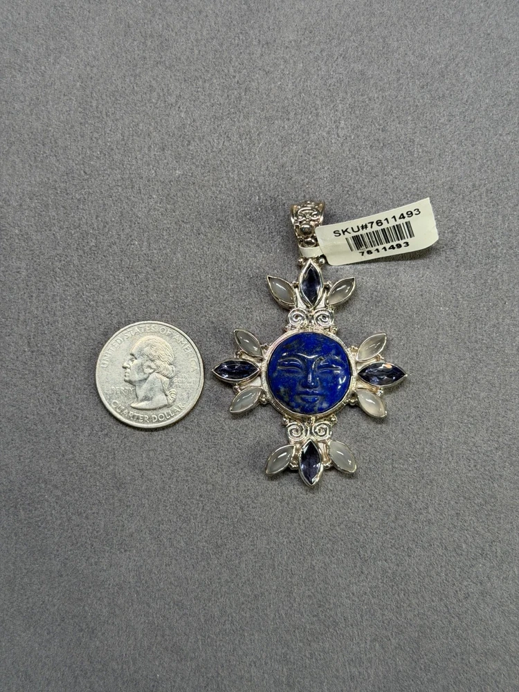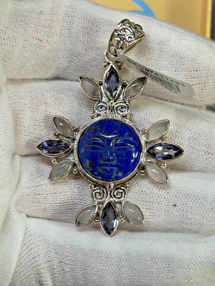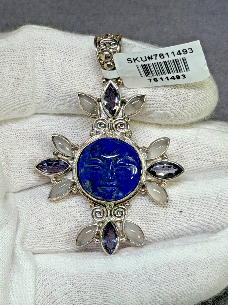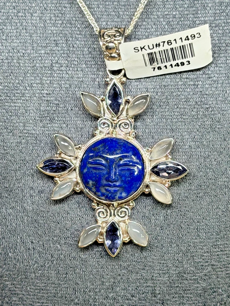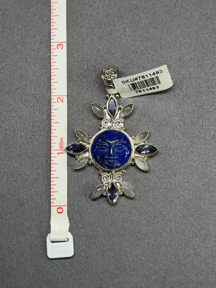 - SAJEN Sterling Silver Lapis Lazuli Carved Moon Face w/ Moonstone Iolite Pendant - *DOES NOT INCLUDE NECKLACE CHAIN* - EXCELLENT/ BRAND NEW CONDITION - ITEM SHIPS OUT IMMEDIATELY - - REPUTABLE SELLER - CHECK MY FEEDBACK! - Base metal: 925 Sterling Silver Manufactured: Sajen Aprx. Weight: 19.20 grams Aprx Size (w/ bale): 2-1/2 inch X 1-5/8 inch Stones: Lapis Lazuli / Moonstone / Iolite **ITEM HAS BEEN INSPECTED BY LICENSED GEMOLOGIST TO ENSURE ACCURATE DETAILS & QUALITY** Piece is in very good condition. Please reference pictures for description. (MANY PHOTOS w/ DIFFERENT LIGHT SETTINGS) Comes with case. Most items are sent via USPS ground advantage w/ insurance unless another option is chosen. All items exceeding $749 will require signature. Handling typically takes 1-3 days. (some items will have handling charges to help cover parcel insurance) **IF YOU REQUIRE QUICK TURNAROUND PLEASE SELECT AN EXPEDITED SHIPPING** CHECK OUT MY OTHER FINE JEWELRY LISTINGS!!! >>> https://www.ebay.com/str/alwayforward/Jewelry-Watches/_i.html?_sacat=281 Notes: J02-374