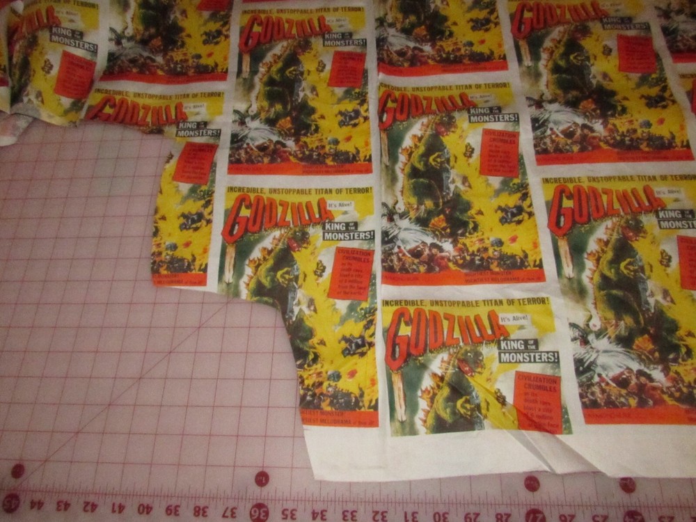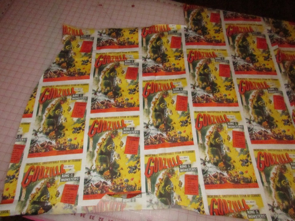 This fabric features a Godzilla Movie Poster print on 100% cotton material. With measurements of 45 x 70 inches, it is ideal for various craft projects. Main solid piece is 45 by 70 inches with another 18 by 25 inch piece attached fabric is cut with uneven edges ~ please see pictures Pre-washed. PLEASE ask any questions before bidding. Sold As-is.