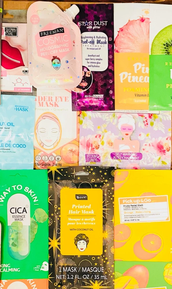 The ULTIMATE Variety Pack! | 15 Treatments | Holiday Cheer Skincare Mask Collection! A Delightful Collection of sheet masks, to hydrate and improve your skin! A wonderful Variety Pack for Face, Lips, Eyes, Nose, Feet, Hands, Hair and much more... HYDRATING Replenish skin's moisture. SOOTHING Contains key ingredients to actively calm skin. BRIGHTENING Adds radiance to overall complexion and helps even out skin tone. Each mask features a soft, non-irritating material to effectively deliver essence to the skin. Treating yourself to a sheet mask can help boost complexion! Each sheet mask focuses on a key ingredient to add radiance and support the skin. It's a great way to sample all sheet masks Beauty has to offer! Every mask in the collection is made out of a soft, silky material that conforms to the shape of your face, giving you a snug fit so your skin can absorb all the ingredients. Please Note: You will receive 15 Individually Packaged Quality Masks. The pictures give you an idea of the variety of masks you will receive. You will not get everything pictured. Please contact me with any question or special requests. Thank you for your consideration.