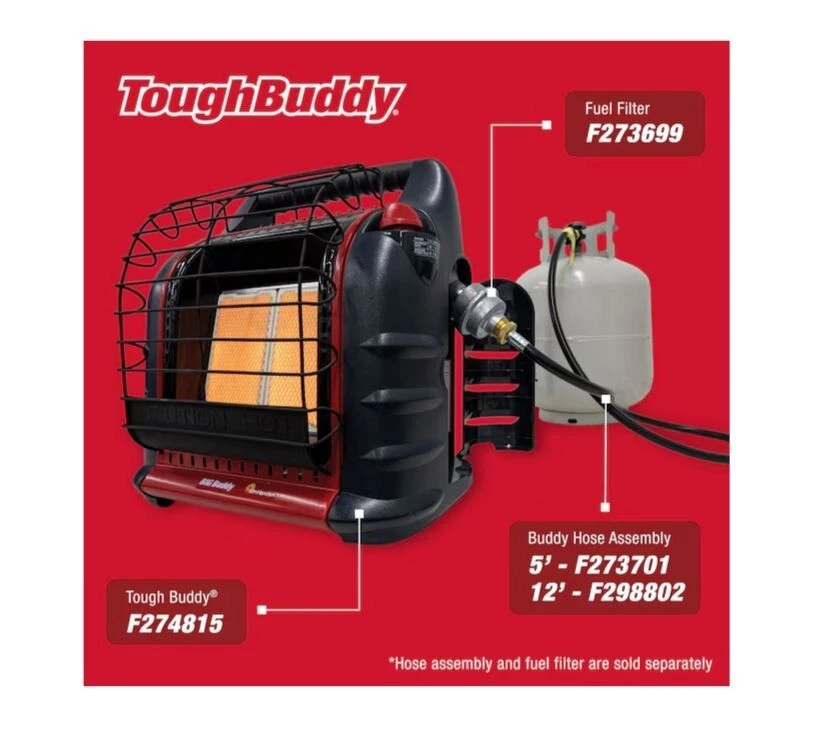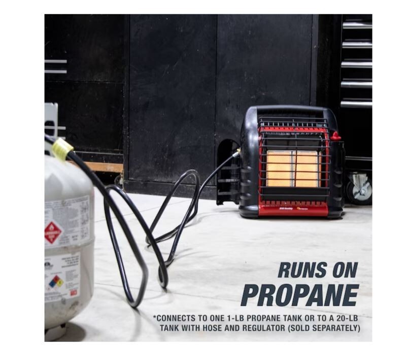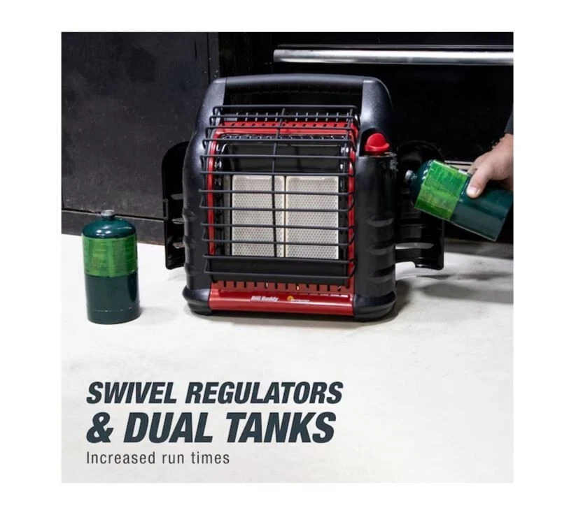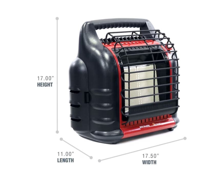 Overview Cold campsites and frozen lakes call for the warmth of a Big Buddy heater. For your next excursion, the Big Buddy will keep you comfortable with up to 18,000 BTU of heat. Swivel regulators make for easy setup; just screw on two 1-lb propane cylinders or connect to a 20-lb tank using Buddy accessories. The 450 square feet of coverage makes any ice shanty a sauna and any deck a sunroom. With the heaters Life Safety System you won’t sweat too much knowing the oxygen depletion sensor, thermal shut-down system, and tip-over switch are keeping you safe. For all of your indoor and outdoor adventures, the Big Buddy is there for you. Emits 4,000, 9,000 or 18,000 BTU/hr radiant heat Designed and approved for indoor and outdoor use Exclusively at Lowe's Heats up to approximately 400 square feet Dual heating system combines radiant heat comfort with convection heat air flow Features emergency low oxygen safety system 3 temperature settings: low, medium, and high Runs 10.8 hours on low; 4.8 hours on medium; 2.4 hours on high Equipped with accidental tip-over switch