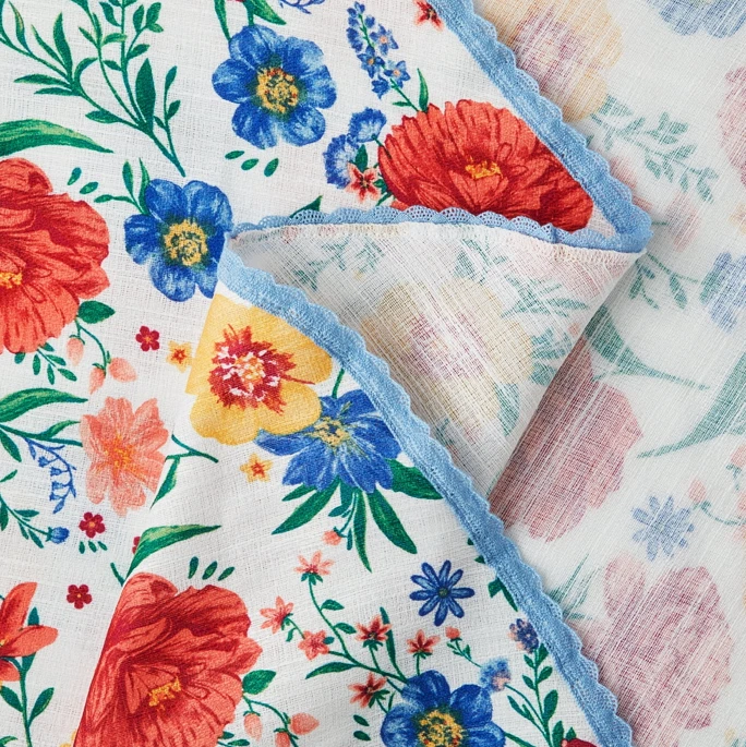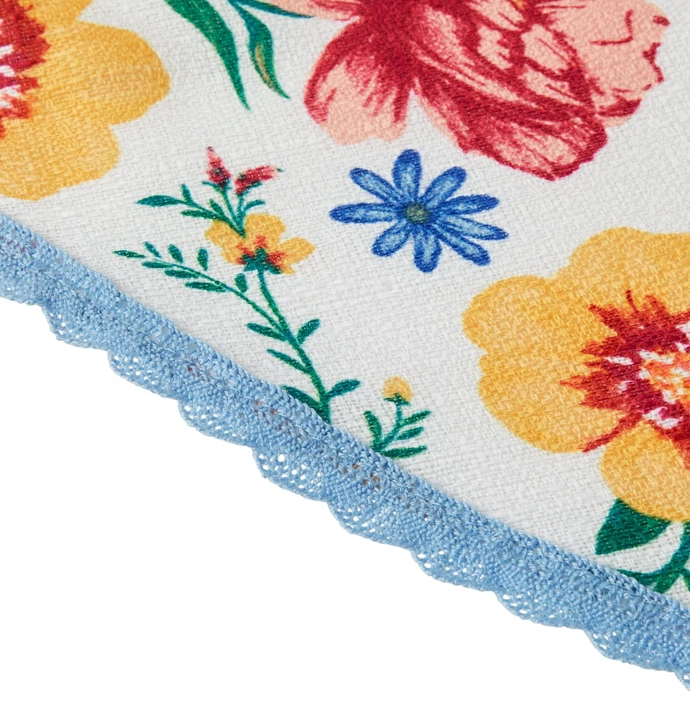 Department: Home Color: floral Room: Dining Room Country/Region of Manufacture: China Theme: Farm Life Pattern: Floral Brand: Pioneer Woman Personalize: No Material: Cotton Blend Item Width: 70 Type: Tablecloth Features: Machine Washable Style: Country Shape: Round