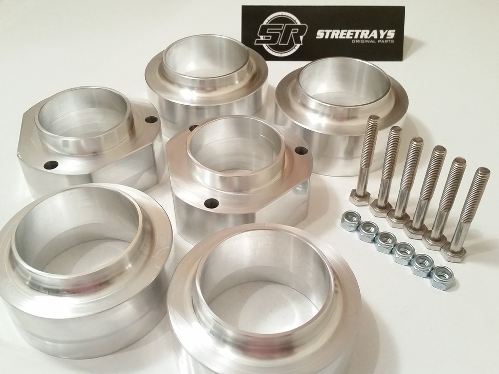 StreetRays [Originals] 89-98 Geo Tracker / Suzuki Sidekick 2WD 4WD 2" Front & Rear Leveling lift kit CNC Machined Finished (All Around) Application: 1989-1998 Geo Tracker 1989-1998 Chevy Tracker 1989-1998 Suzuki Sidekick StreetRays [Originals] parts are 100% machined right! here in Central Texas. Matched with the best hardware which is also sourced here in USA. Quality material & precision machining is the main ingredients of all our parts. StreetRays [Originals] lift kit will raise the front & rear of your Sidekick / Tracker by an actual 2". Our spacers are CNC machined out of 6061 T6 billet aluminum in Central Texas. Guaranteed to outlast everything on the car and will not fail you ever. And we can assure you that our spacers are the strongest on the market and come with a 100% satisfaction guarantee and full warranty. StreetRays coil spring spacer are precision machined and have spring seat flange to ensure proper seating of the spring and each spacer is guaranteed to fit perfectly every single time. This is not a cast plastic or cast aluminum or cast rubber or polyurethane. These are 100% CNC machined billet aluminum. Most importantly, they allow you to fit up to 31" tires. StreetRays kit will also include all the correct hardware and a general instruction. We recommend professional installation if you don't have the correct set of tools.