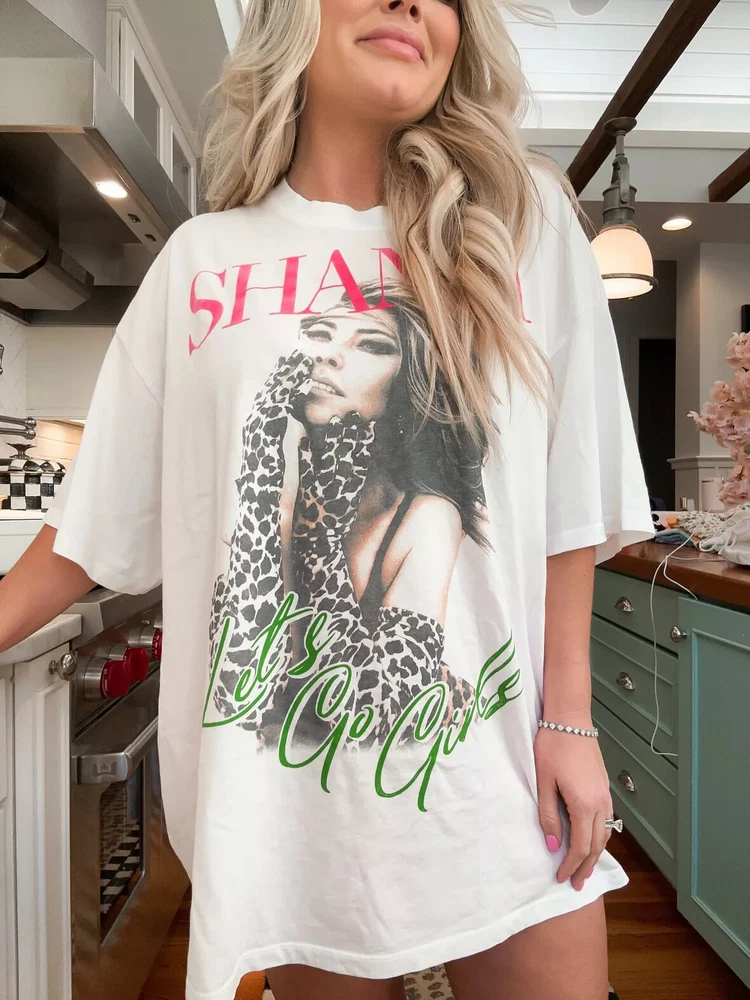 SALE Shania Twain Let's Go Girl White tee Reprint T shirt Classic Style