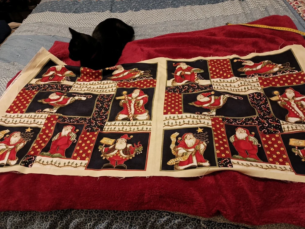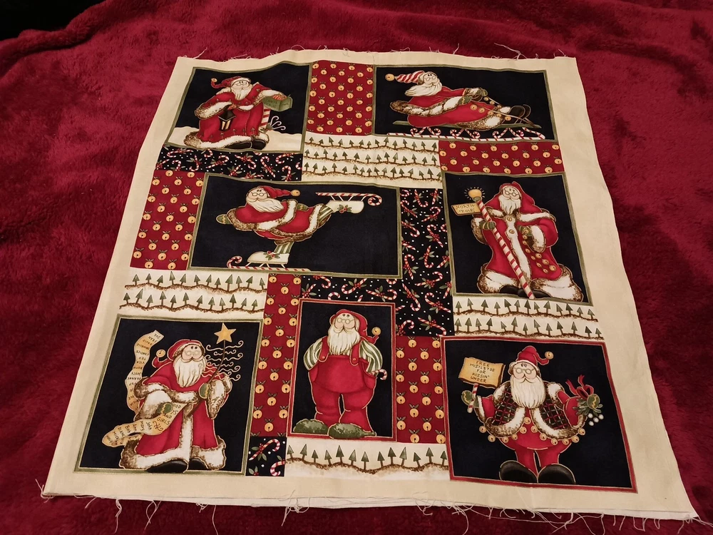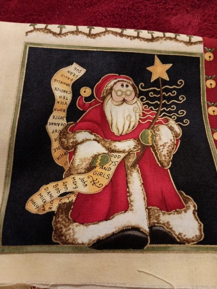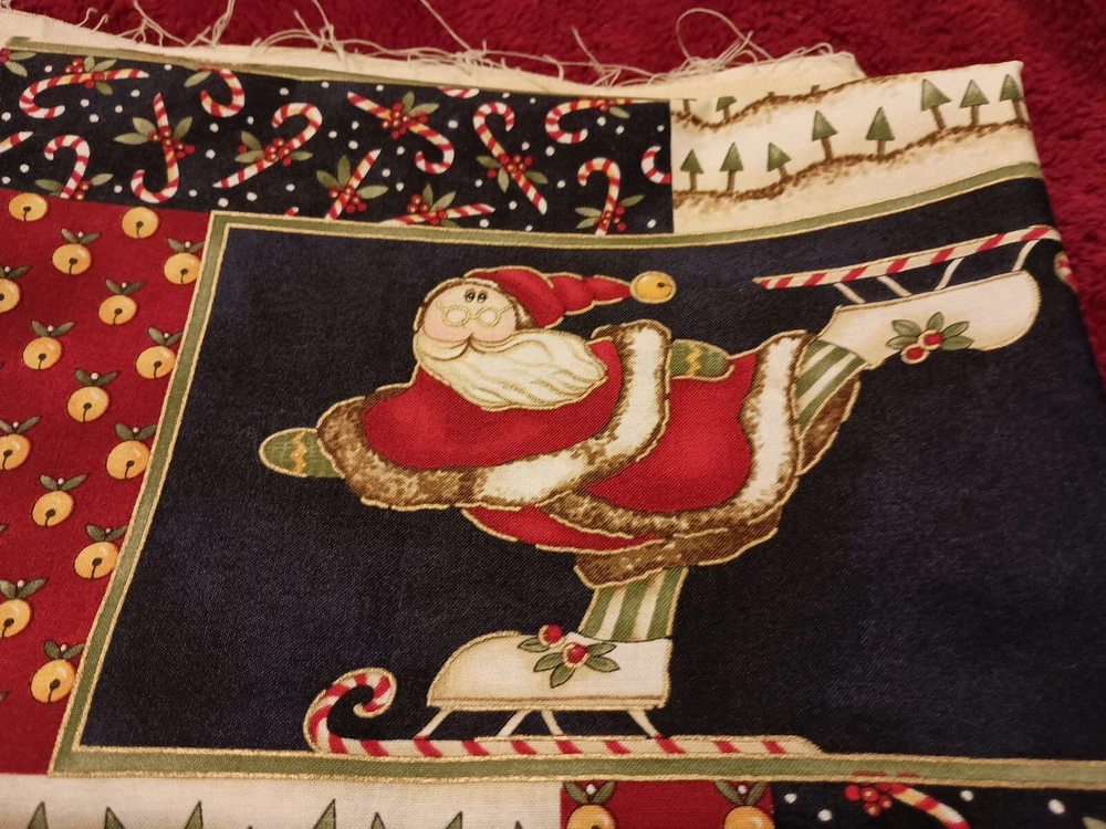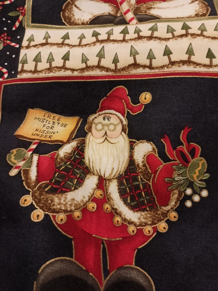 Add a festive touch to your Christmas décor with this whimsical Santa fabric designed by Diane Knott. The multicolor cotton panel measuring 23"X45" is perfect for creating a large throw pillow or for use in your crafting projects. The fabric is suitable for use in quilting, sewing and other crafts. It features a Santa theme and is sure to add a cheerful vibe to your holiday projects. Whether you're making a new pillow cover or a holiday quilt, this fabric is a must-have for any Christmas project. Kitty cat not included 😁
