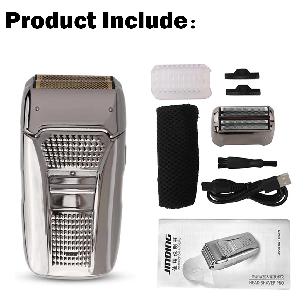 Des c ri p tion: Comfortably Fits Facial Contours: Alternate shaving design, elastic facial adjustment system, conforms comfortably to facial contours, no residue after shaving. Double Blade Design: Slim Screen Knife Net, Floating Face Adjustment to Quickly Capture Beard. Double blade design, fast cutting beards, incisive and not glued. Dual-purpose charging plug: Dual-use charging and plug, USB charging design, equipped with USB charging cable, can be connected to a variety of USB power ports, convenient charging. Multifunctional: Multifunctional, can be used to shave the bald head and shave the beard. Conforms to the ergonomic design, easy to grip and use. Easy to carry: Light and small in size, equipped with a storage bag, easy to carry when going out. Condition: 100% Brand New Item Type: Razor Material: ABS Color: Gold/Gray Power: 3w Charging Time: 5 Hours Use Time: 50 Minutes Battery: Lithium Battery 600mAh Battery Model: 14500 Razor Size: Approx. 12.5 x 6.5 x 3cm / 4.9 x 2.6 x 1.2in Weight : 270g(with box) Package List: 1 x Razor 1 x Storage Bag 1 x Transparent Cover 1 x Head Cover 2 x Half-Round Knife 1 x Cleaning Brush 1 x Manual 1 x USB Charging Cable