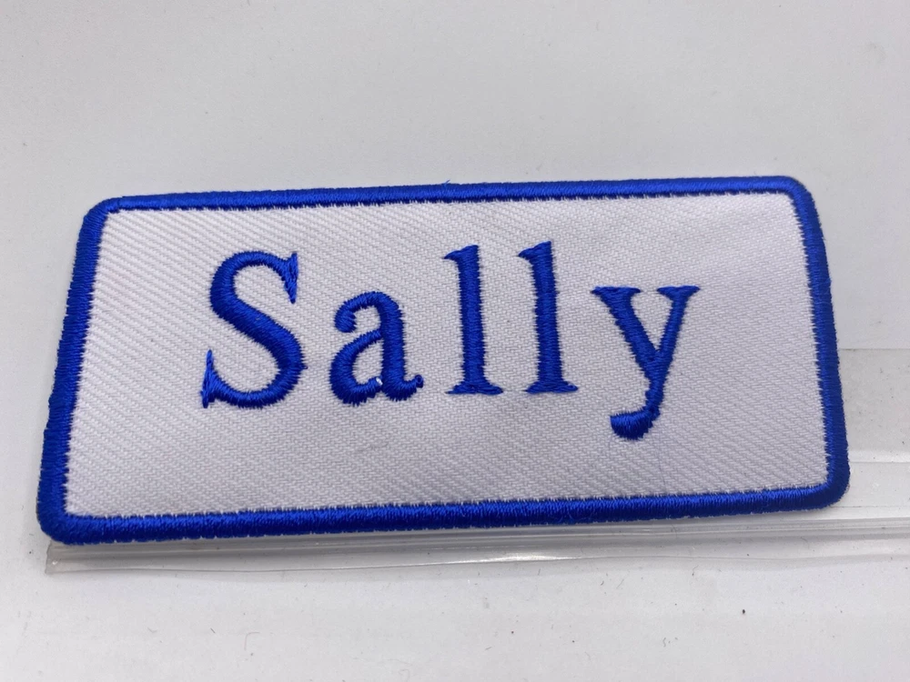 THIS AUCTION IS FOR A NEW EMBROIDERED IRON/SEW ON NAME PATCHES) ( SIZE 1-1/2 INCHES TALL AND 3-1/2 INCHES WIDE) SALLY (BORDER AND NAME EMBROIDERED ) (AVAILABLE IN BLUE ON WHITE) (NEW) SHIPPING FOR THIS ITEM WILL BE (FREEEE IN THE U.S.A.) PLEASE PAY THROUGH EBAY. ITEMS WILL BE SHIPPED 1 BUSINESS DAY AFTER RECEIVING PAYMENT. THANK YOU FOR LOOKING! ! CLICK HERE TO Save as Favorite Seller Most items will be shipping in a regular letter envelope and will NOT have a tracking number. All items will be shipped the next day, if you pay before 10:00am pacific time your package will ship same day. If you pay on Saturday you package will ship on Monday unless it is a holiday it will ship on Tuesday. I ship 6 days a week. by 10:00am pacific time. INTERNATIONAL BIDDERS SHIPPING FOR THIS ITEM WILL BE $3.00 FOR THE FIRST PATCH OR SET AND .25 FOR EACH ADDITIONAL PATCH. THANK YOU FOR WATCHING <div style="text-align:center"><a style="text-decoration:none" href="http://mostpopular.sellathon.com/?id=AC583636"><img src="http://www.sellathon.com/Resources/Images/countercredit.gif" border="0"></a></div>