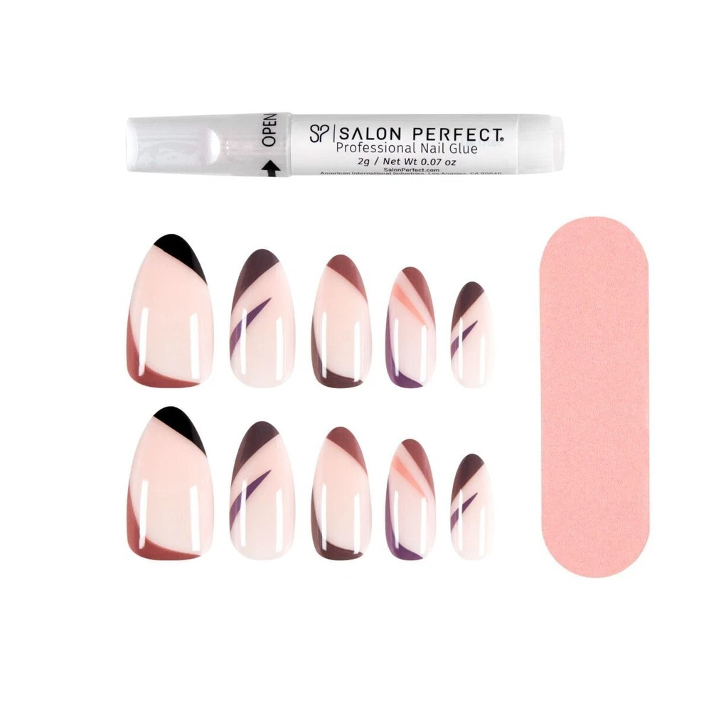 SALON PERFECT Artificial Press-On Nails - Modern Art Nude (Set of 2 pack) Pro Artistry Press Ons Turn your nails into stunning works of art with Salon Perfect’s Modern Art Nail Sets. Our professionally designed press ons bring the salon home to you with trend setting, statement looks. Comfortable to wear, easy to apply and remove, our tips come in a gallery of shapes, lengths and finishes for every mood. - Flexibile at the cuticle, offering a realistic and natural nail look - Apply in minutes & easily removed - Contents: Set of 2 boxes x 30 Nails, Nail File, Professional Nail Glue, 2 g / Net Wt 0.07 oz We strongly recommend that you consult your physician or a skin care professional for an analysis of your particular skin type and sensitivity level before purchasing any products listed. No refund will be given for any reason relating to product effect or compatibility with your skin type, including allergic reaction. Opened products are not eligible for return.