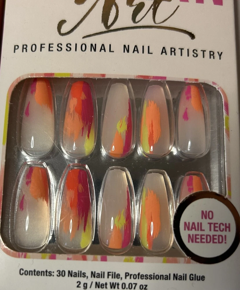 Effect:ShinyNail Size:LongShape:CoffinCountry/Region of Manufacture:ChinaColor:MulticolorFeatures:Glue Included, Pre-Designed, Self-AdhesiveTheme:Modern ArtBrand:Salon PerfectSuitable For:Finger, Nail ArtType:Press-On Nails