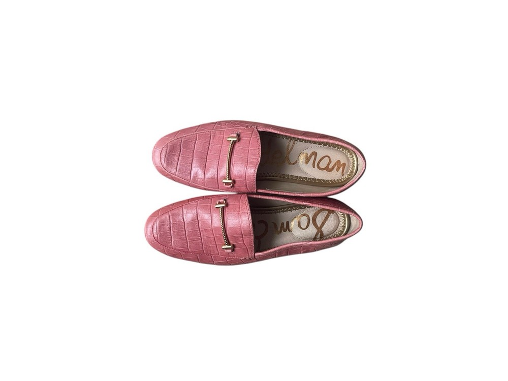 SAM EDELMAN Loraine Pink Leather Croc Embossed Loafers Size 5.5. Condition is Pre-owned. Shipped with USPS First Class.