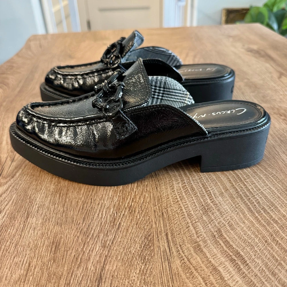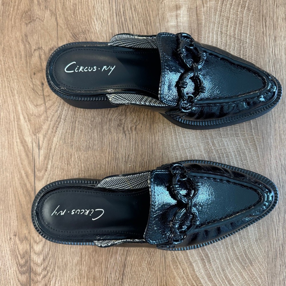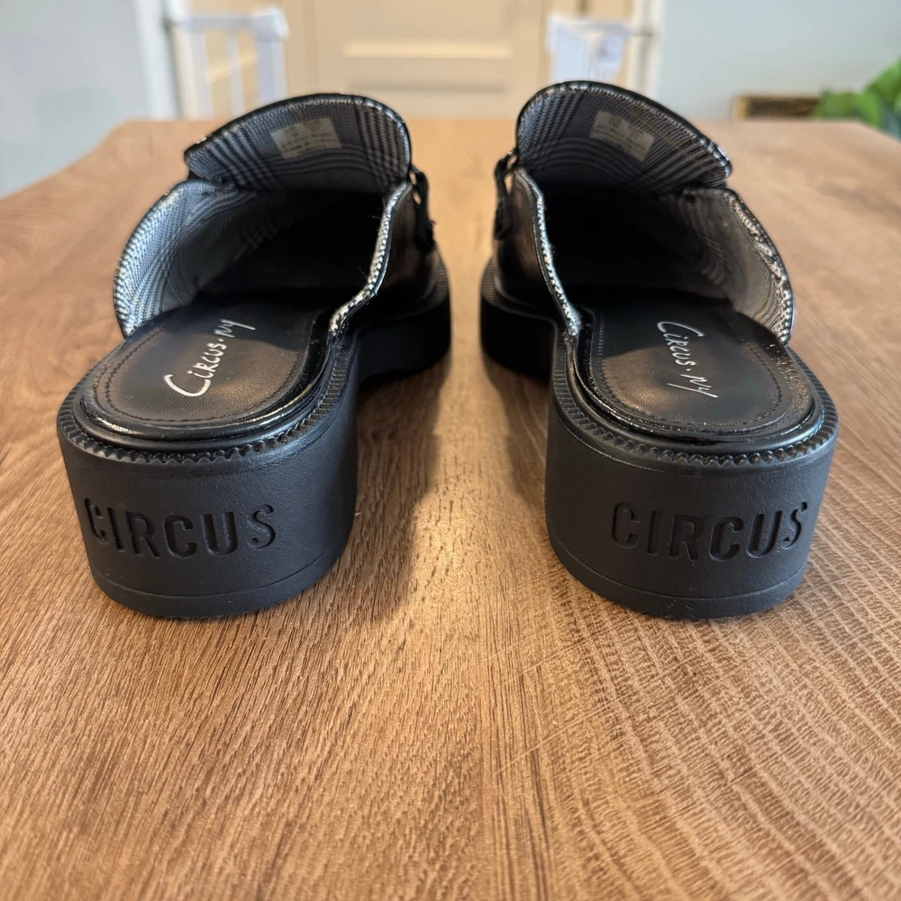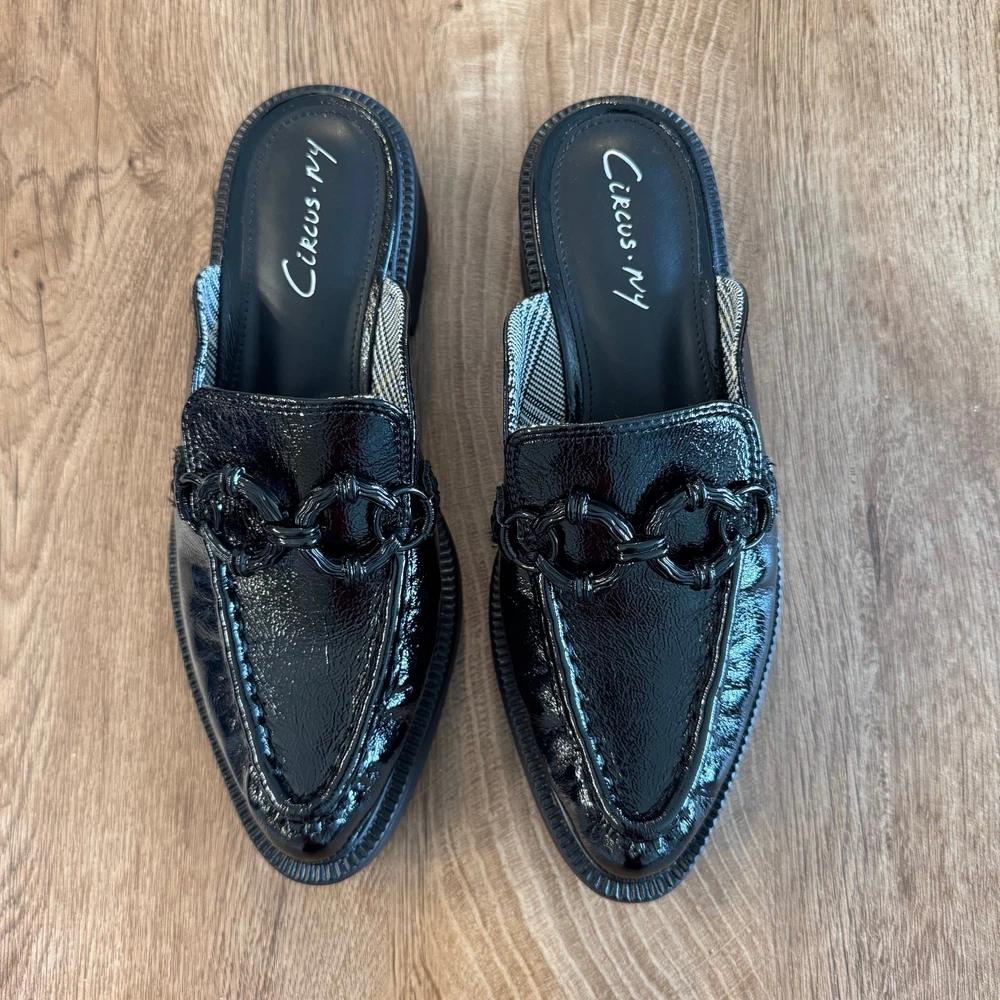 CIRCUS NY By SAM EDELMAN | Nancy Black Glossy Slip On Mules | Women’s Size 7 Brand: Circus NY by Sam Edelman Shoe: Nancy Mule slip ons Size: Women’s 7 U.S. (37 EUR) Color: Black Material: polyurethane Heel height: Approx 1.75 inches Condition: Pre-loved in excellent condition. (See listing photos) Thank you and have a lovely day!