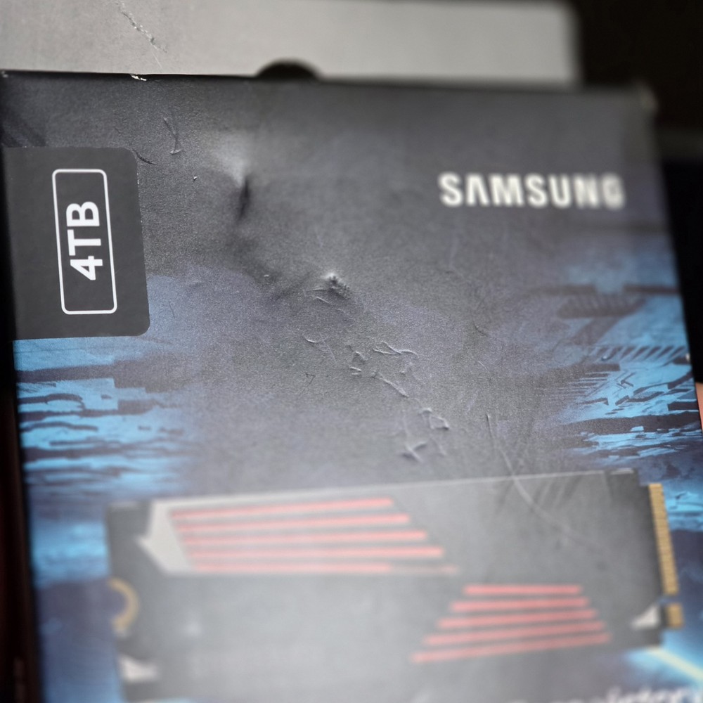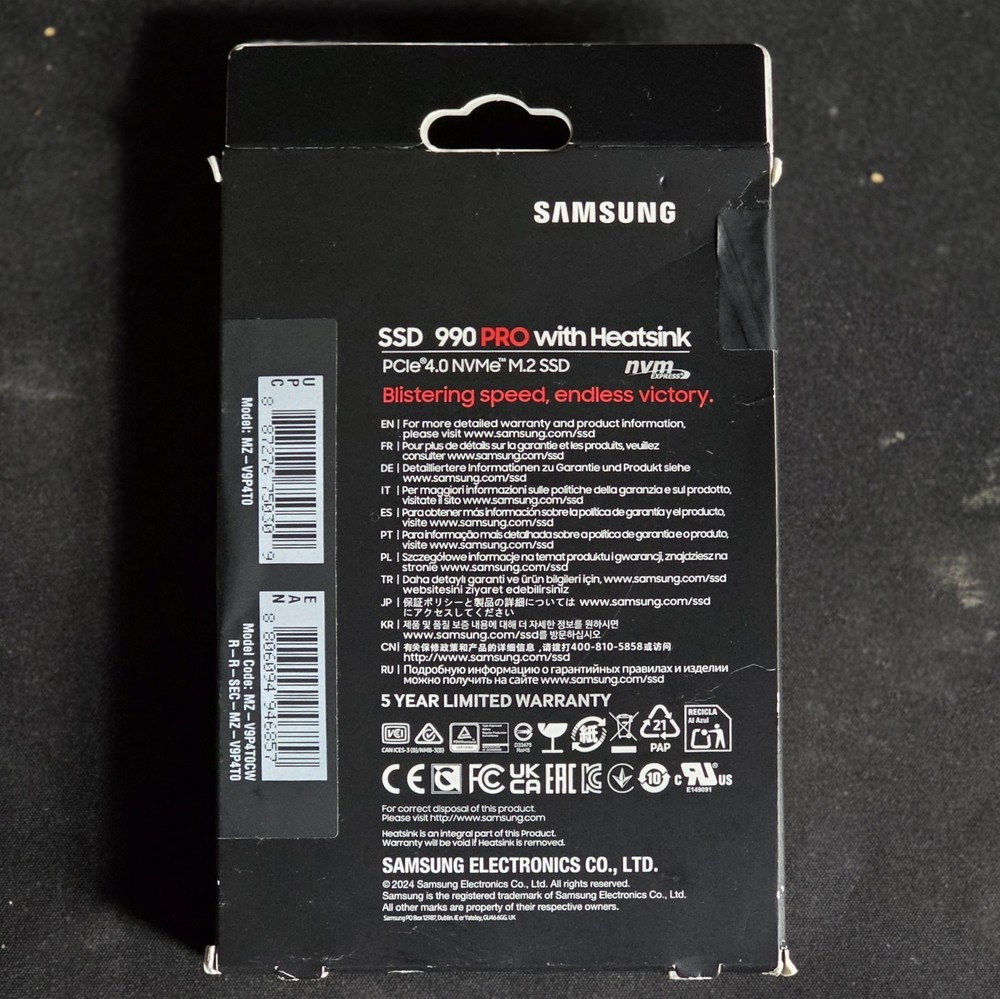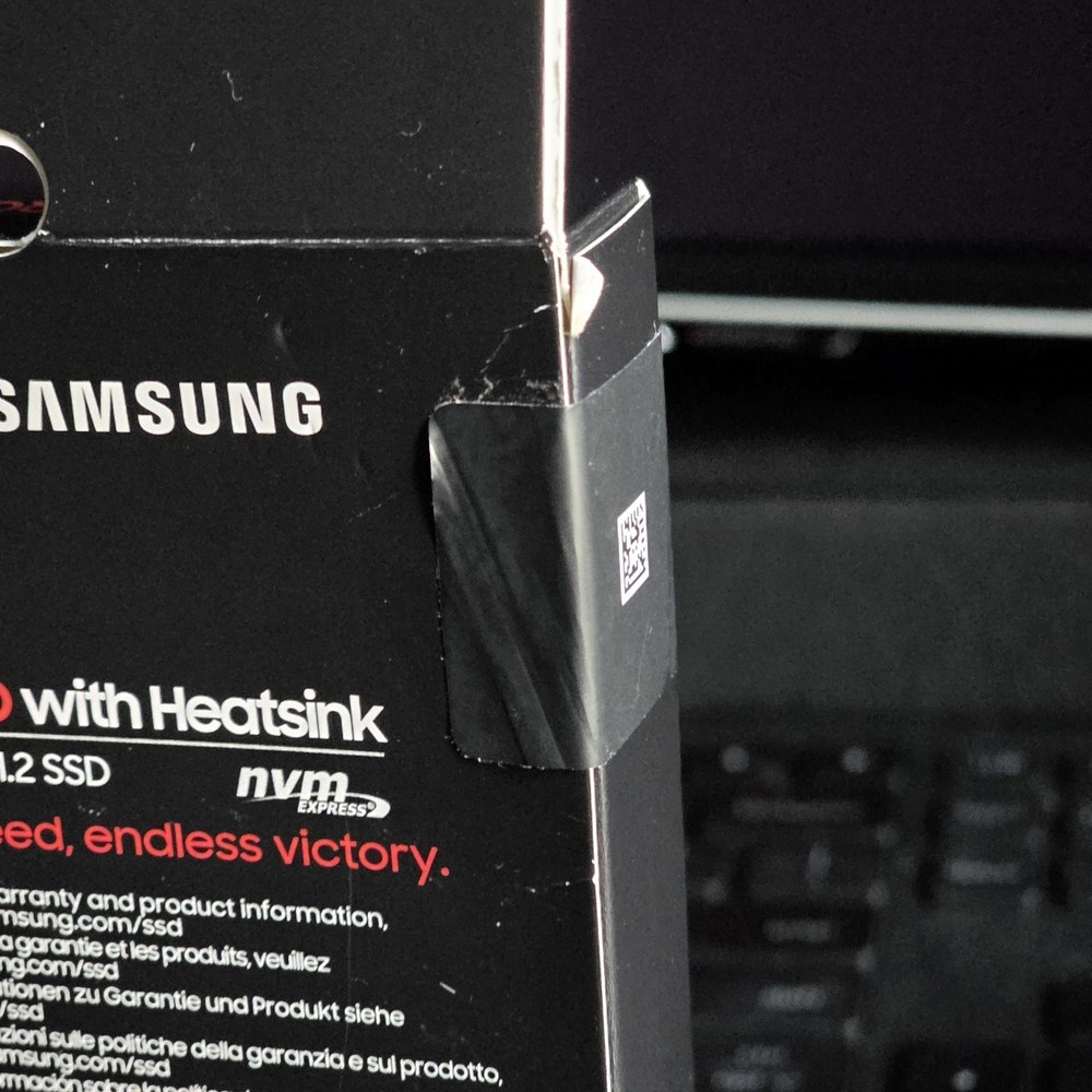 LIKE NEW - Only listed as open box because the tape was slightly peeled. The product itself is UNUSED. Box has some minor damage. INFO: The SAMSUNG 990 PRO SSD 4TB with Heatsink is a high-performance internal solid-state drive designed for desktop PCs. With a sleek M.2 2280 form factor and PCIe Gen4 interface, this SSD offers lightning-fast write speeds of up to 7,450 MB/s, making it ideal for demanding applications. The heatsink feature ensures optimal temperature management during operation, while the Samsung Pro product line guarantees reliability and durability. With a generous storage capacity of 4TB, this SSD is a top choice for those seeking exceptional speed and efficiency in their computing experience.