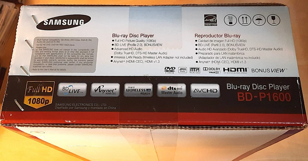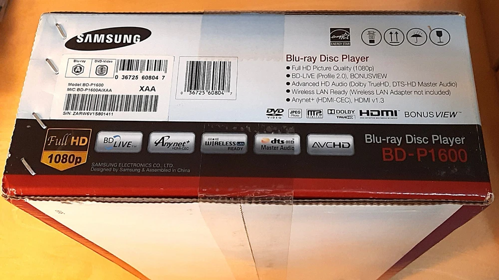 This is SAMSUNG BD-P1600 BLU-RAY DISC PLAYER FULL HD 1080p HDMI USB W Remote CIB . The Blu-Ray Disc Player is BRAND NEW (NEVER OPENED, FACTORY SEALED). It is an original bought from the store (CHECK OUT THE PICS!!!!!). I’m also getting rid of thousands of DVD’S and CD’s that I collected over the years and most of them were NEVER Opened from their original packing….. Domestic and JAPANESE IMPORT releases!! Kick your home theater system into high gear with the Samsung BD-P1600. This player outputs video at "Full HD" 1080p resolution, for exceptionally vivid, lifelike images from high-definition Blu-ray Discs — the best HD source available. You'll also enjoy master-quality surround sound, thanks to built-in decoding for "lossless" Dolby TrueHD and DTS-HD Master Audio soundtracks. Key features: · Pl ays Blu-ray discs, DVDs, CDs, and JPEG CDs · Internet-ready - plays TV shows, movies, and music from a number of sources, including Netflix®, Blockbuster On Demand®, YouTube™, and Pandora® (broadband service required; subscription required for Netflix and Blockbuster service) · Wi-Fi capable with optional USB adapter · BD-Live Ready — requires 1GB USB memory drive · Remote control included Technical Specs: · Selectable output resolution: 1080p signals available through HDMI output only; 720p/1080i signals available through HDMI or component video · Selectable 720p/1080i/1080p video upconversion for DVD (upconverted video available through HDMI output only) · Built-in audio decoding for Dolby Digital, Dolby Digital Plus, Dolby TrueHD, DTS-HD and DTS-HD Master Audio Essential · High-resolution audio can be decoded in the player or in your compatible receiver (HDMI connection required) · Video outputs include composite video, component video, and HDMI · Audio outputs include stereo, coaxial digital, and optical digital · Ethernet port for Internet connectivity and possible future upgrades · 2 USB ports (1 front, 1 rear) for storing downloaded BD-Live material · 16-15/16"W x 2-1/16"H x 9-5/8"D · MFR # BD-P1600A · Item # 305BD1600 What's in the box: · Single-disc Blu-ray disc player · AK59-00104k wireless remote control · 2 "AAA" batteries · 47" A/V cable (has an RCA composite video and stereo audio connectors on each end) · User Manual · Quick Setup Guide · Online Product Registration information · "Player Update Information" note Since this Blu-Ray Player is Originally Factory Sealed, It is being SOLD AS IS. Check out ALL my other rare CD’S and CD BOX SETS, DVD and MORE!! PLEASE DO NOT HESITATE TO EMAIL ME WITH ANY QUESTIONS CONCERNING ANY PURCHASE OR BID Shipping Multiple wins receive combined shipping Double CD's and Boxsets vary in weight, please email me for rates Payment YOU MUST HAVE YOUR PAYMENT TO ME WITHIN 3 DAYS!!!!! NO EXCEPTIONS!! HAPPY BIDDING!!!!