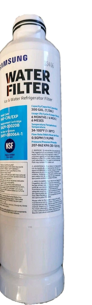 Looking for a reliable water filter that's compatible with your Samsung refrigerator? Look no further than this genuine Samsung water filter, designed specifically for carbon block filtration. It's the perfect choice for anyone looking to remove chlorine taste and odor from their water, and it's ideal for use in a household setting. This filter is made from high-quality ABS material and has a filtration method of carbon block. It's suitable for Samsung refrigerators and has a unit quantity of 1. The filter is white in color and has a height of 8.8 inches, a width of 2 inches, and a depth of 2 inches, with a weight of 14.3 oz. It's an open-box item, but rest assured it's brand new and in perfect working order.