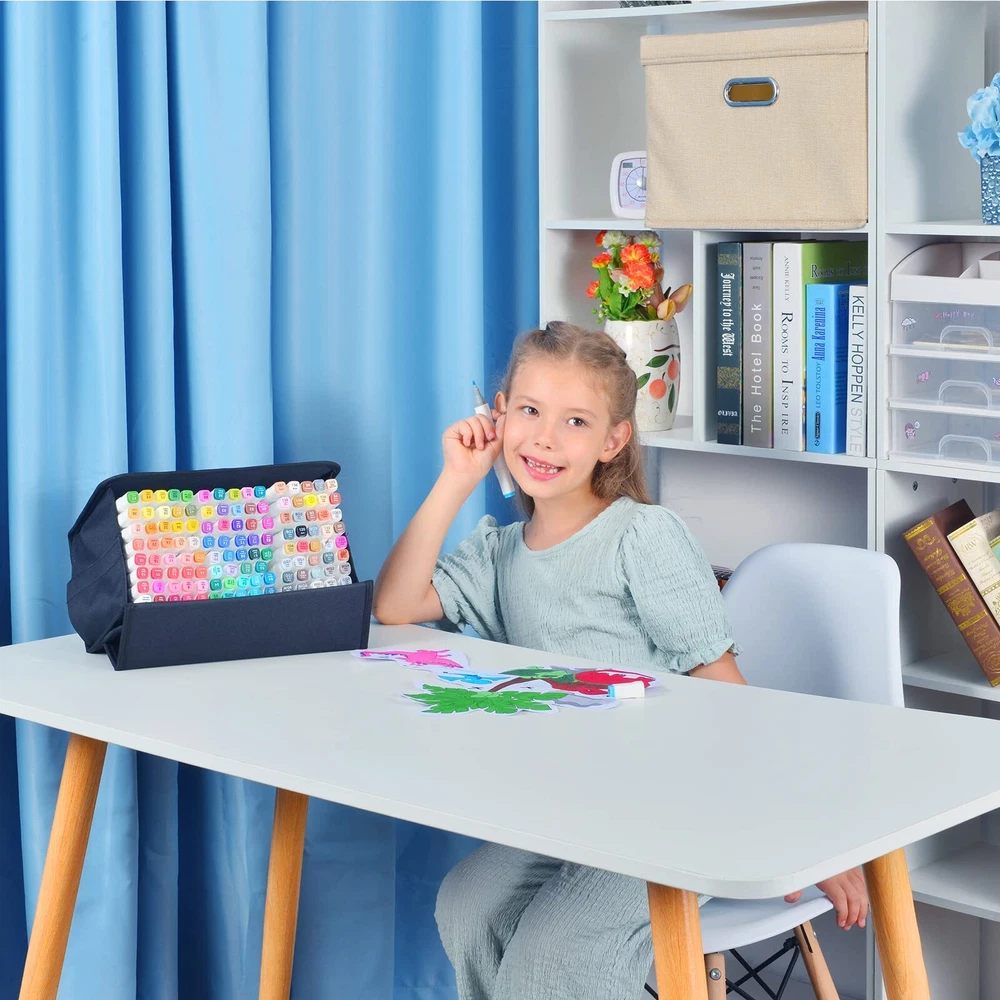 Dual Tips: Each pen features two tips. The chisel tip, which is 6mm wide, is perfect for covering large areas, while the fine tip, capable of drawing 2mm wide lines, is ideal for sketching. Whether for sketching, illustration, drawing, card making, design, or advertising, Sanjoki markers never fail to impress! SMOOTH BLENDING: Our high-quality, non-toxic ink blends seamlessly, enabling effortless creation of excellent artwork. With our premium ink, beginners can achieve smooth gradations more easily compared to other marker versions. DURABLE AND INNOVATIVE BOX:Our travel cases have been crafted to be foldable. By folding the top, the entire case can be leaned on the desk, allowing the colour numbers on the caps to be clearly displayed while our artists can remain comfortably seated. Additionally, you'll save on a pen holder, as our case itself serves as an excellent marker organiser. DRIES INSTANTLY AND NO SMUDGING:The wet ink will never spoil your work! Thanks to our premium alcohol-based ink, your artwork will dry promptly and will never fade over time. Sanjoki's well-crafted tips also guarantee smudge-free results." GREAT VALUE: With 120 vibrant markers included in the set, along with a two-way travelling bag, this set makes for an exceptional gift for special occasions. We stand behind our products with a 100% Satisfaction guarantee. If you are not completely satisfied with your purchase, please don't hesitate to contact us. We are committed to providing you with a solution that meets your needs and ensures your satisfaction.
