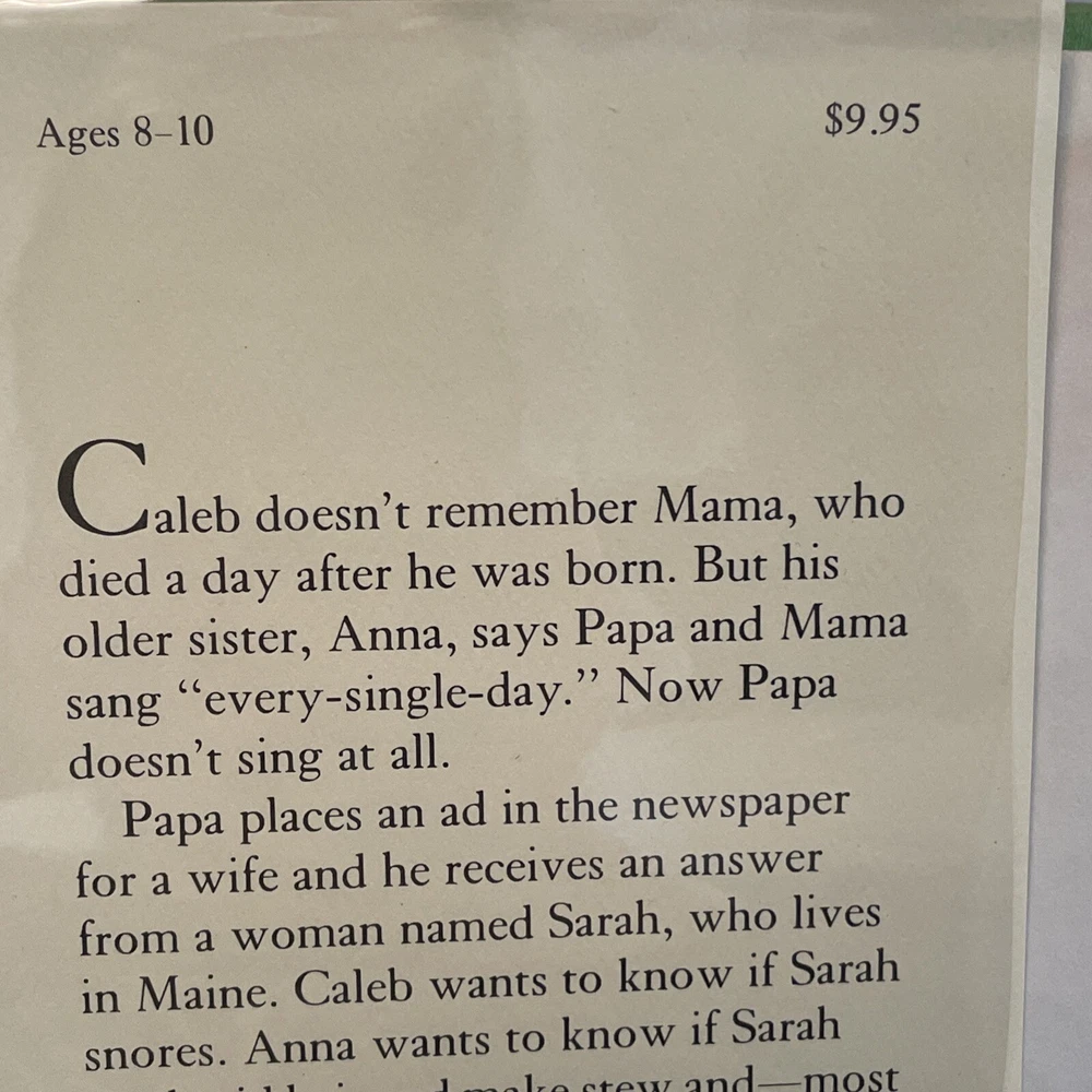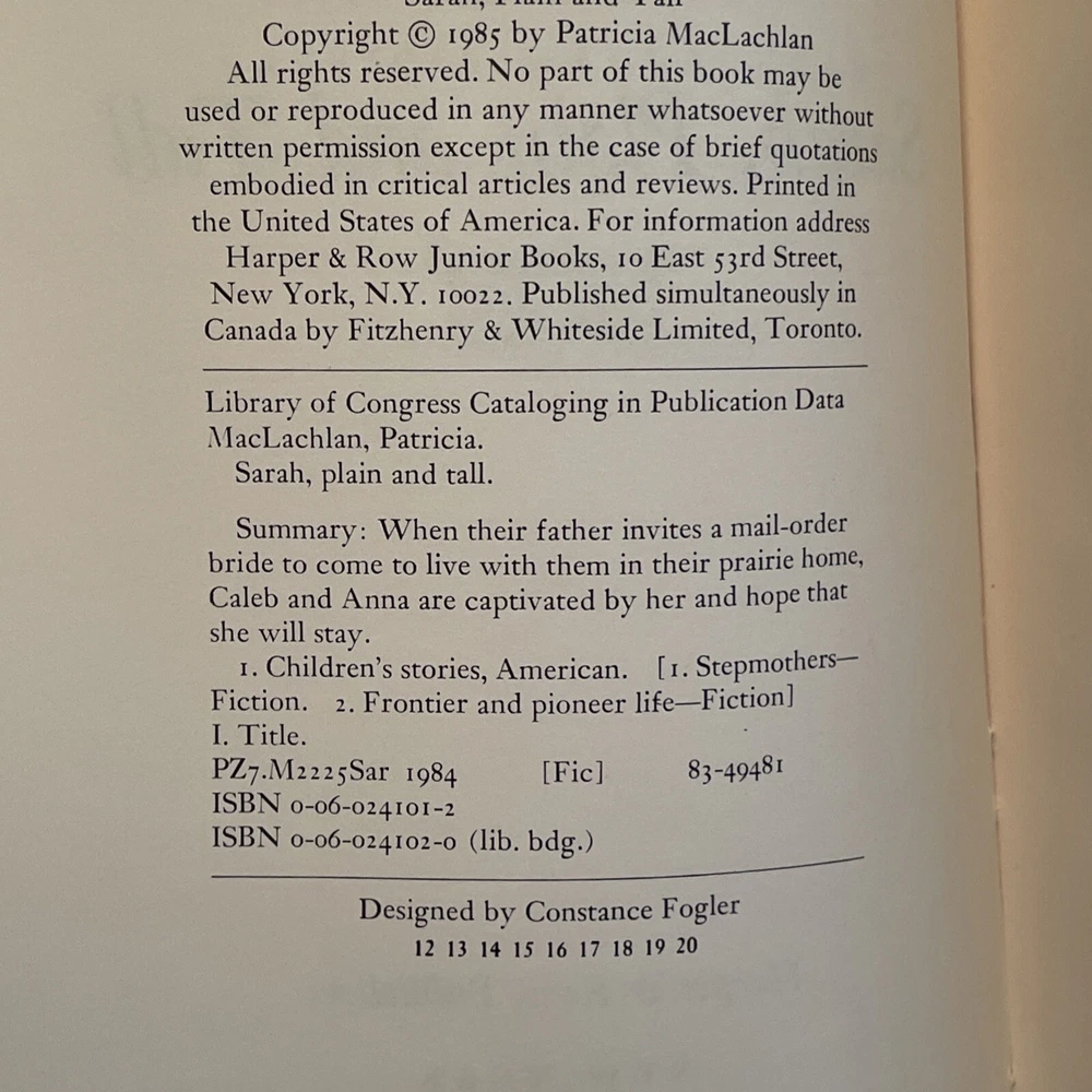 SARAH, PLAIN & TALL Patricia MacLachlan SIGNED. Shipped with USPS Media Mail.