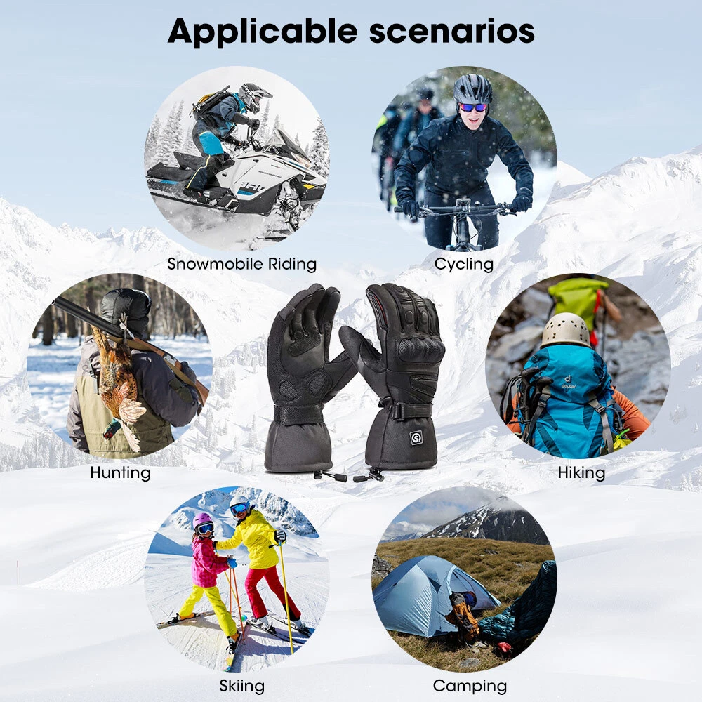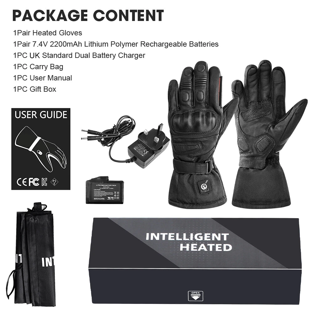 SaviorHeat Professional Heated Motorcycle Gloves Stay warm and comfortable on the road with SaviorHeat's advanced heated motorcycle gloves. Perfect for riders facing challenging weather conditions or individuals with cold-sensitive hands. Key Features: Certified Protection: EN 13594:2015 certified for professional motorcycle riders, offering robust protection on critical hand areas. High-quality conductive leather enables smooth touch and easy use of touch screen devices without removing gloves. Extreme Weather Performance: Operate in freezing temperatures as low as -25°C (-13°F). IPX66 waterproof rating with breathable polyester fabric and an internal water protection bag keeps hands dry in harsh conditions. Premium Materials: Crafted from supreme quality sheep leather with index sewing and rubber padding for palm protection. Carbon fiber knuckle protection shell for enhanced safety. Comfort and Moisture Control: Soft velvet and warm cotton liner for comfort. Integrated waterproof bag resists odors and promotes moisture-wicking for comfortable hand movement. Wide Heating Area: Infrared fiber heating element covers entire fingers and fingertips. Promotes blood circulation, relieves cold and stiff hands, ideal for those with rheumatism, arthritis, and Raynaud's disease. Three Heat Settings: Adjustable temperature settings (high, medium, low) for customized warmth. Fast 30-second activation provides quick heat. Long Battery Life: Powered by two 7.4V 2200mAh lithium polymer batteries. Fully charged in 2 to 2.5 hours, offering extended battery life for outdoor activities. Touch Screen Sensor: Conveniently use touch screen devices while wearing gloves. Perfect for navigation, gaming, texting, and answering phone calls on the go. Versatile Outdoor Use: Ideal for motorcycle racing, mountain biking, motocross, climbing, ATV riding, hiking, and other outdoor sports. Dual Charging Options: Dual charging chargers available in UK, US, and Australian specifications. Automatic prioritization based on the region of your order. Warranty: One-year warranty and friendly customer service ensure your satisfaction with SaviorHeat heated gloves. Note: We offer dual charging chargers in UK, US, and Australian specifications.Send the charger with the corresponding specification according to your ordering address. New and old switches are sent out randomly. Gear up with SaviorHeat and ride in warmth and comfort!