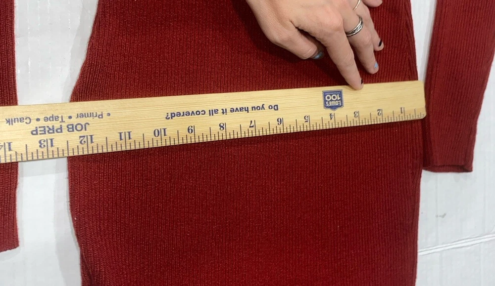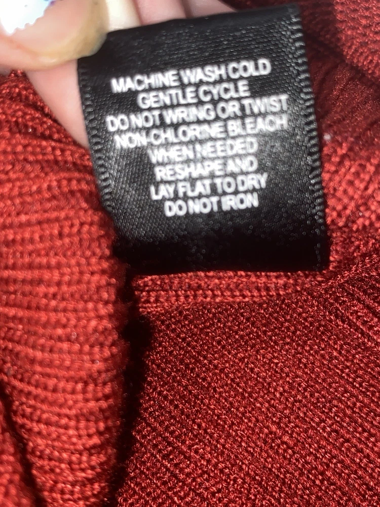 Pre owned body con deep red sweater dress. Brand is Say What? Turtleneck with open chest and 2 rings. Please review all pictures and ask any questions prior to purchase.