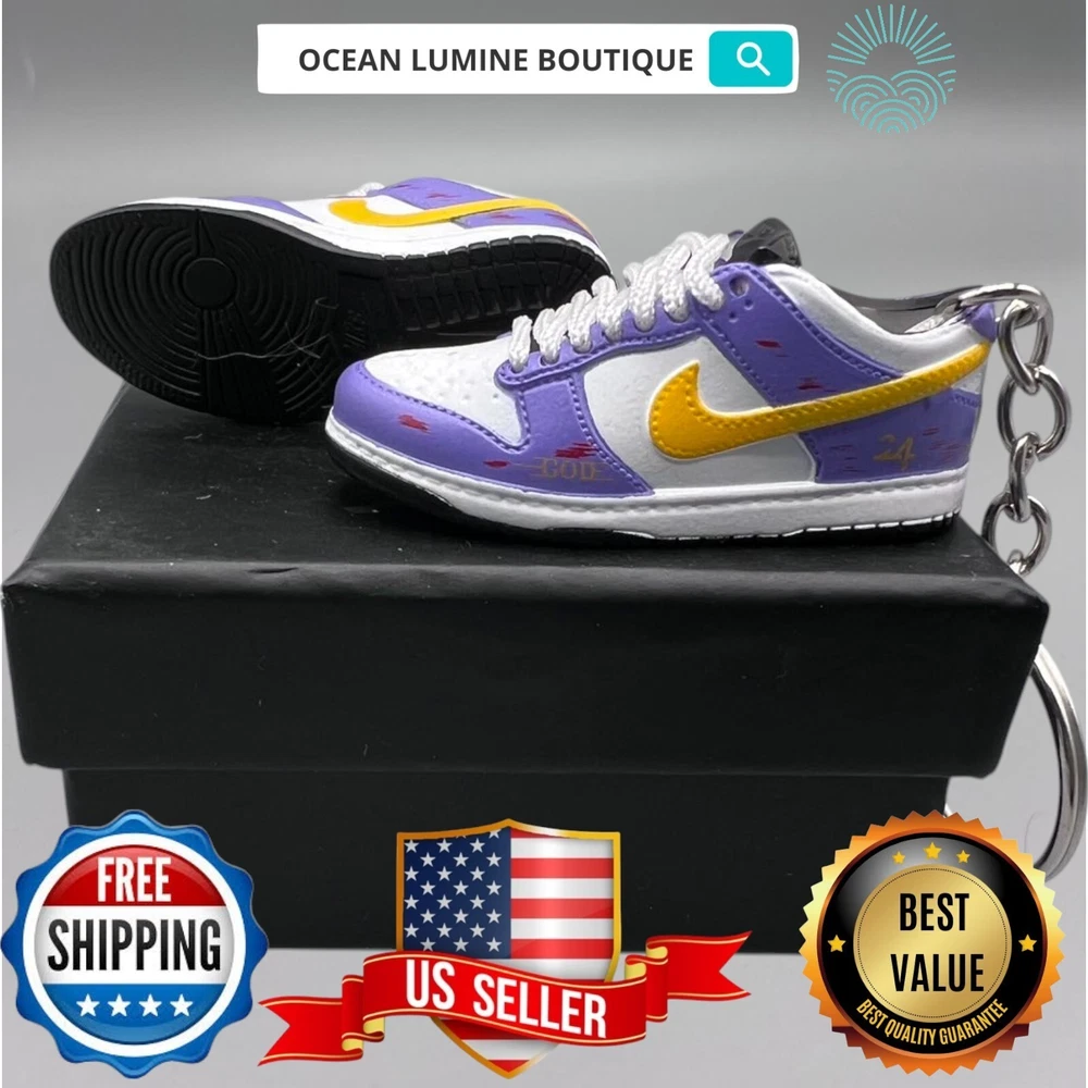 PLEASE READ BEFORE YOU PURCHASE You get the style in the very first pic, if you searching for more styles plz visit my page This is the best quality you can get, many other cheaper ones have poor quality, I know all the factories trust me, some really be making crap and you can not tell from the pictures. Handcrafted and hand-painted 3D Mini Sneaker Keychains inspired some of the most coveted sneakers ever produced Materials as ABS Plastic (Soft Plastic) Jordan pin color will be given randomly (If chosen) All Shoe keychain size is about 2 1/2 (L) x 1" (W) x 2" (H) The shoe Tongue is movable, it is not cracked or broken. Random shoe box styles will be given, if you have a preference please get in touch with me. These are all handmade and hand-painted with better paint, if you want to find a lower price please seek lower quality, my key chains are the best quality you can find. We've been selling these key chains for 3+ years, and have the most styles & best quality with super fast shipping. Search OCEAN LUMINE BOUTIQUE on any search engine to visit us! CLICK ME FOR MORE STYLES Disclaimer Product packaging, specifications, and prices are subject to change without notice. All information about the products is provided for information purposes only. Please always read labels, warnings, and directions provided with the product before use. Shipping We will ship all orders within 2 business days of payment, we provide free upgrade USPS shipping service up to 2-DAY Priority if Urgent Contact We can be contacted at any time through eBay messages if you have any questions, comments or product requests. We will respond to you within 24 hours and do our best to help you out! Features and further details 3000+ keychains in stock with up to 400+ styles We do bulk orders with discounts and provide long-term business relationships More styles are available in my shop PP WORLD